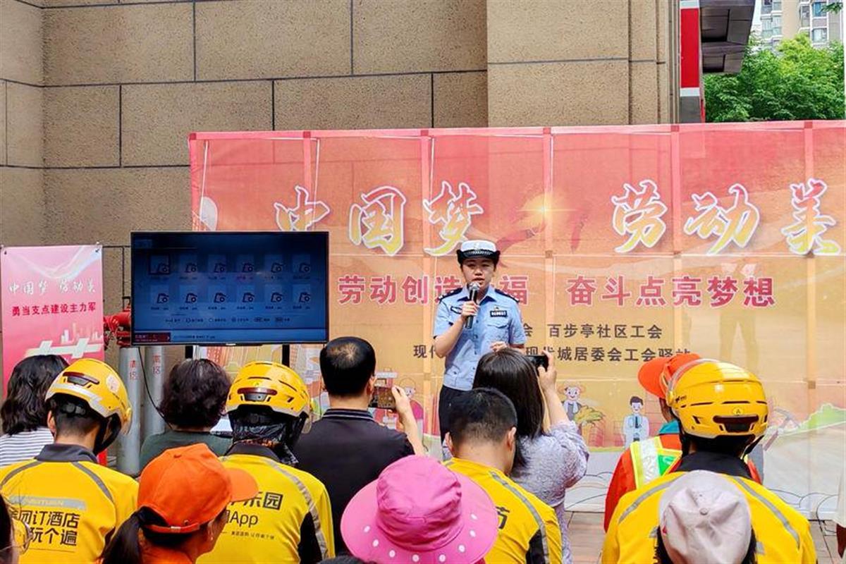 与此同时,分局将安全防范关口前移,通过精准宣教提升群众自我保护意识。在“五一”国际劳动节来临之际,交通管理大队“丽斯交通课堂”走进百步亭社区,为快递员、环卫工人、网约车司机等户外工作者送上交通安全知识大礼包。民警彭丽斯通过展示事故案例视频、图文演示等形式,讲解电动车规范骑行、交通规则遵守等实用知识,互动问答环节更是让户外工作者强化了“安全第一”的意识。此次活动不仅提高了城市劳动者的交通安全意识,还传递了“尊重劳动、关爱劳动者”的社会风尚。