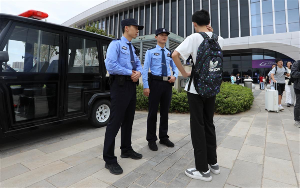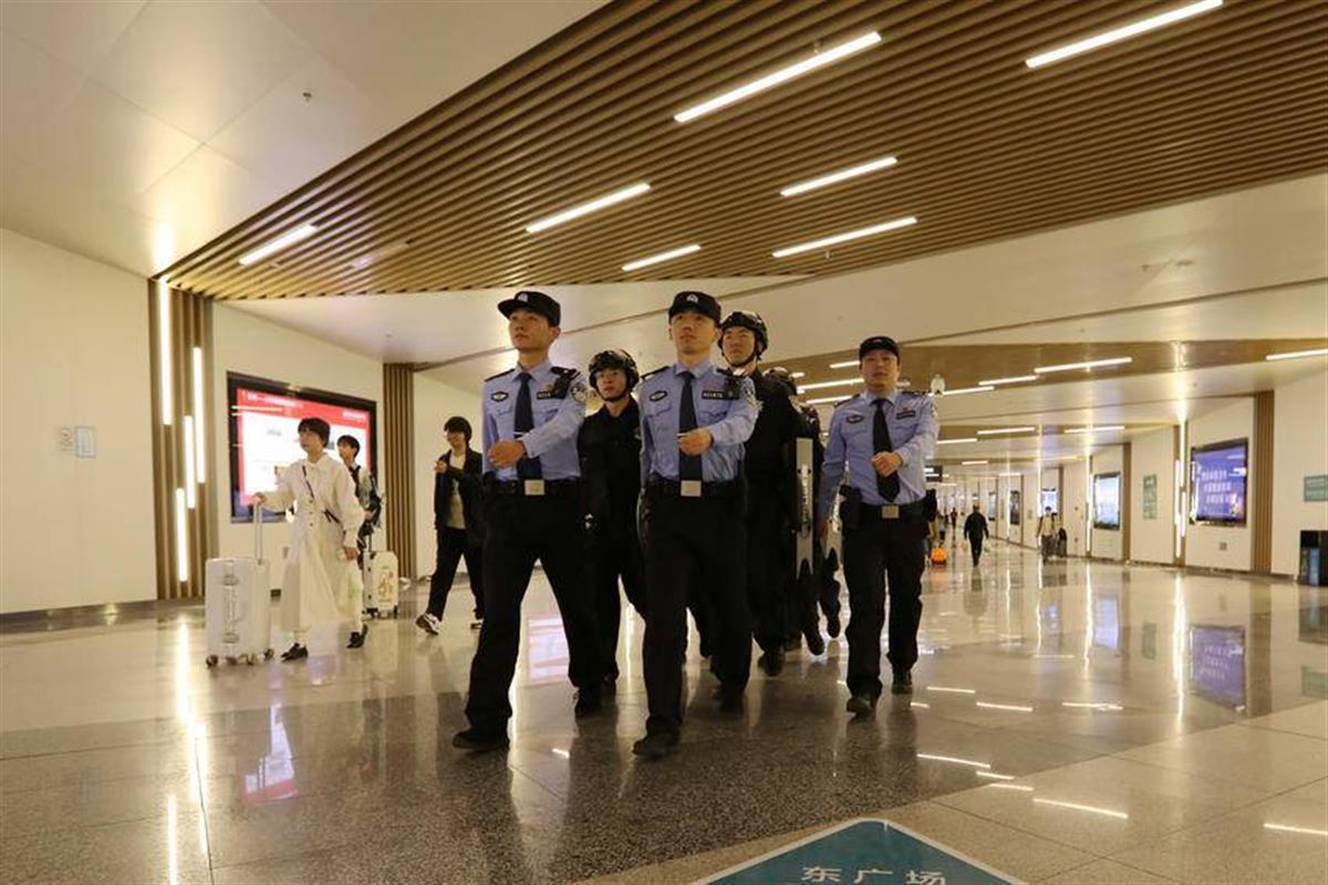 在站台区域,民警曾明雄的贴心服务温暖着每一位游客。当看到一位拄着拐杖的老人颤巍巍地走向闸机时,他立刻快步上前,扶住老人单薄的手臂:“婆婆,65岁以上可以免费乘车,我帮您刷脸进站吧。” 随后,民警一路护送老人到车厢,并再三叮嘱安全员多加照顾。当发现一名与家人走失的小女孩时,民警单膝跪地,轻声安慰:“小朋友别害怕,警察叔叔一定帮你找到爸爸妈妈。”通过广播寻人,仅仅8分钟,小女孩就回到了父母的怀抱。在炎炎烈日下,民警辅警的警服早已被汗水浸透。