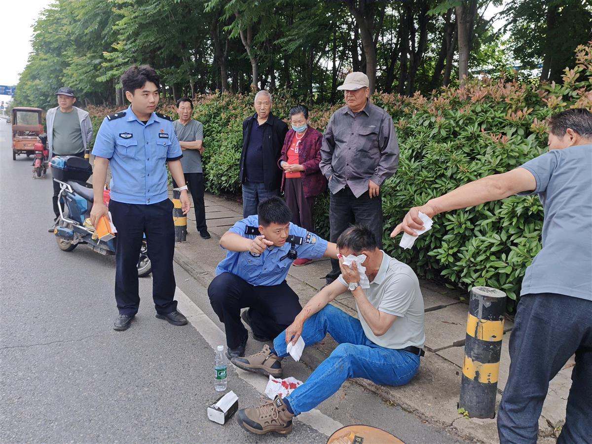 5月7日上午,武汉市汉南区滨江路上堤路口突发电动三轮车与电动自行车碰撞事故,伤者倒地、交通受阻。紧急时刻,路过的长航武汉公安汉南派出所民警高效开展救援、疏导交通并留存证据,全力保障伤者生命安全与道路畅通,赢得群众一致称赞。
