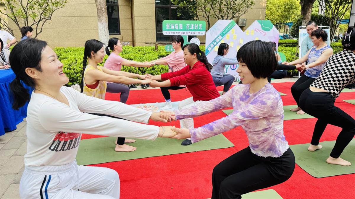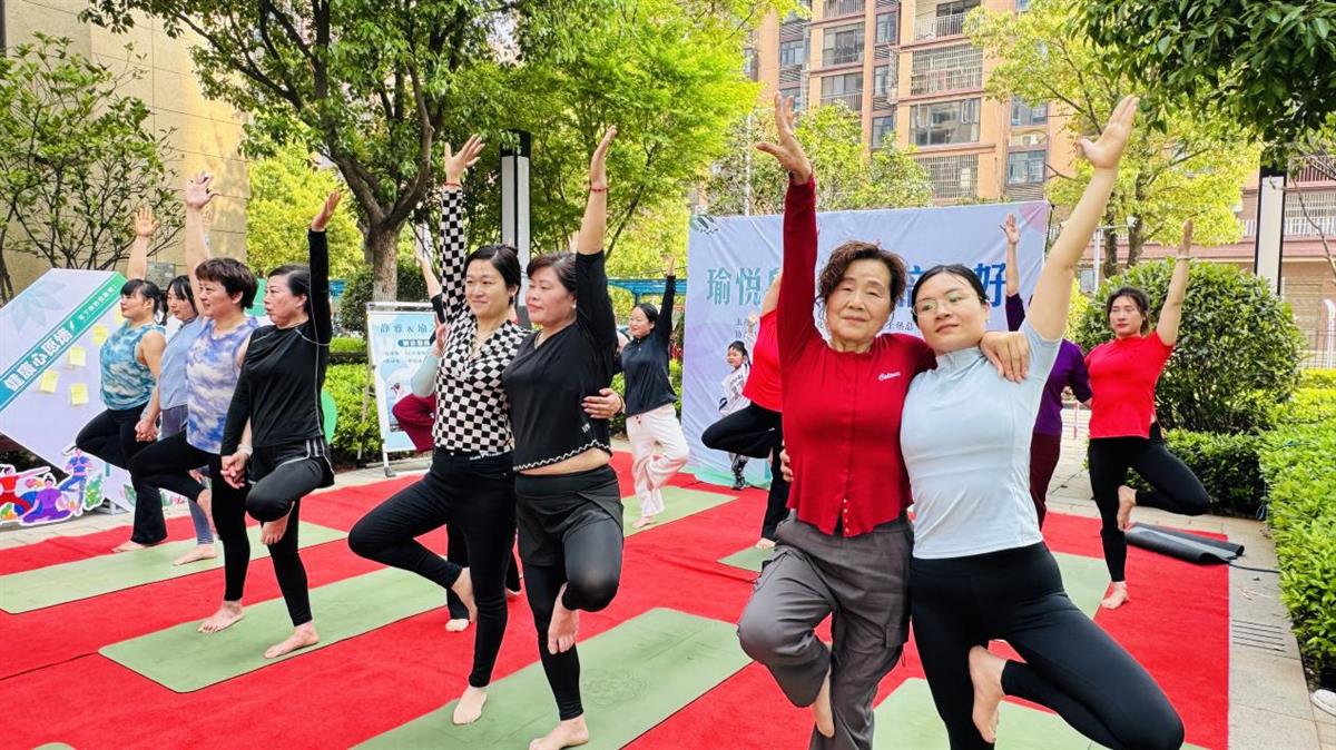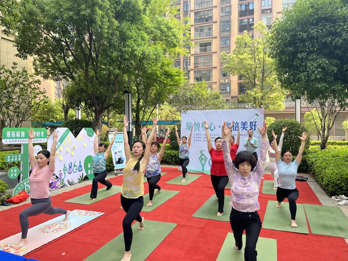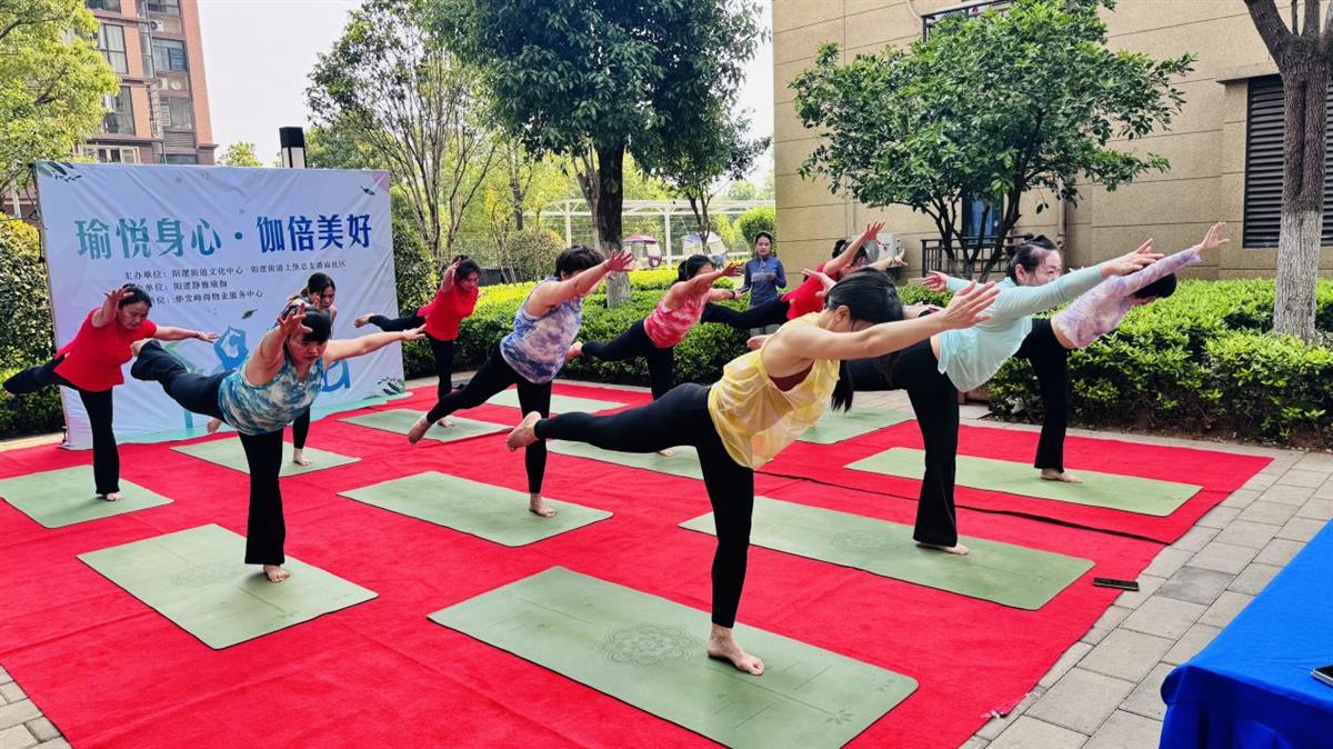 近日,武汉长江新区阳逻街道潘庙社区“瑜悦身心·伽倍美好”全民健身展示活动在华发峰尚小区成功举行。活动以瑜伽为载体,通过展演、体验与共建三大板块,为居民传递科学健身理念,深化社区健康文化氛围。现场热闹非凡,吸引百余名居民积极参与。