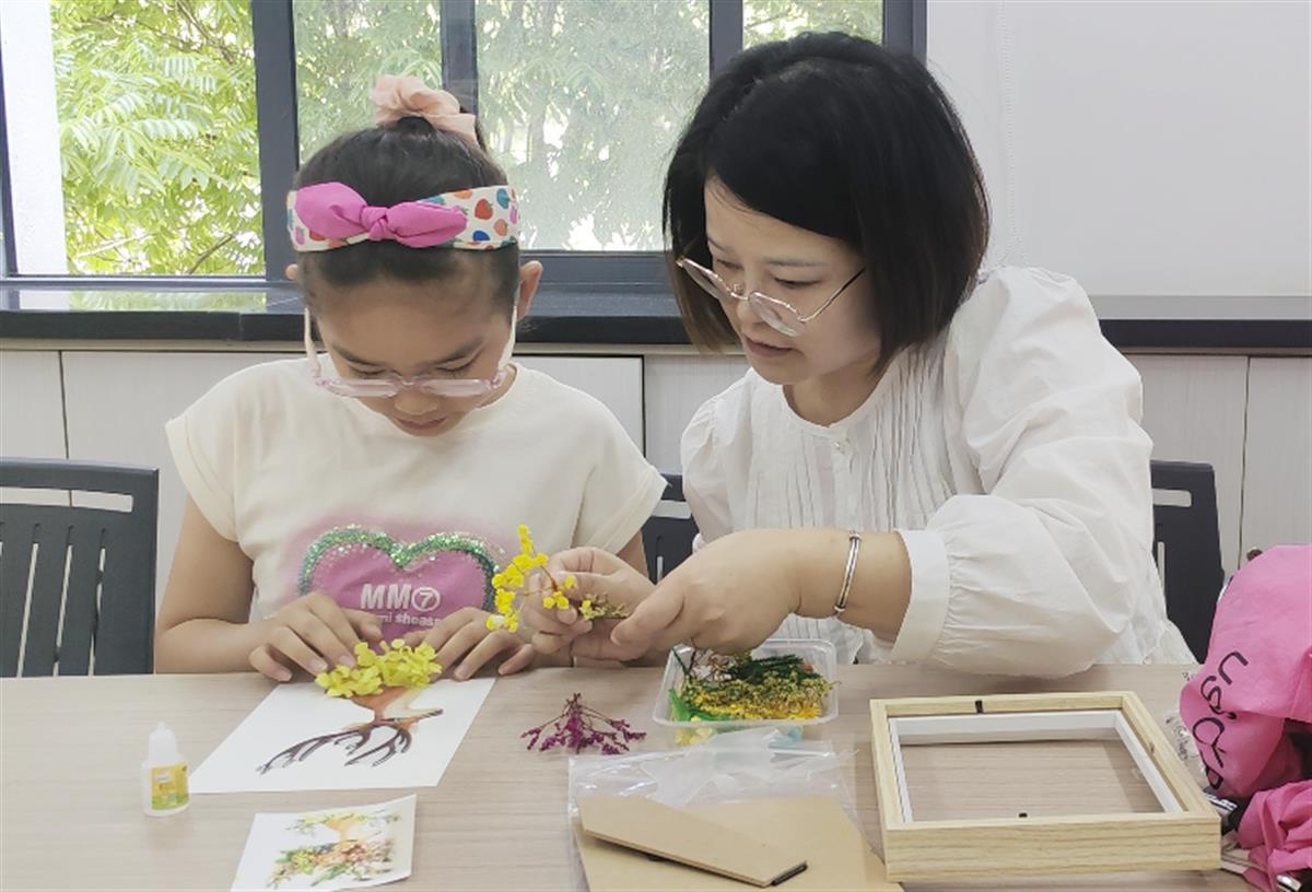 活动现场,妈妈们负责裁剪材料,孩子们用贴纸装饰,最终合作完成作品。居民金女士看着女儿小心翼翼为画框贴上动物贴纸,感慨道:“平时总嫌她做手工弄乱房间,今天才发现她小手这么巧。”
