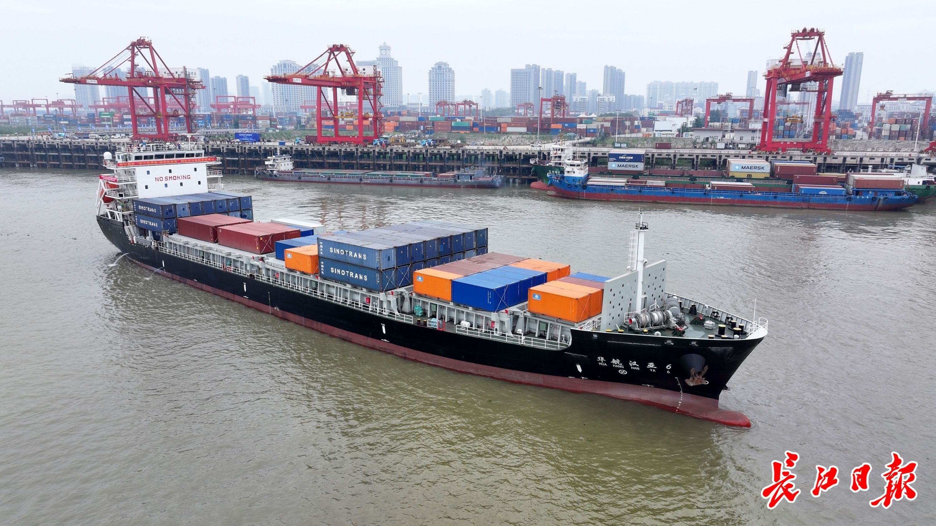 2024年,长江干线武汉至安庆段6米水深航道全线贯通,实现万吨级船舶常年通航。武汉港作为内陆港,凸显出通江达海的优势。