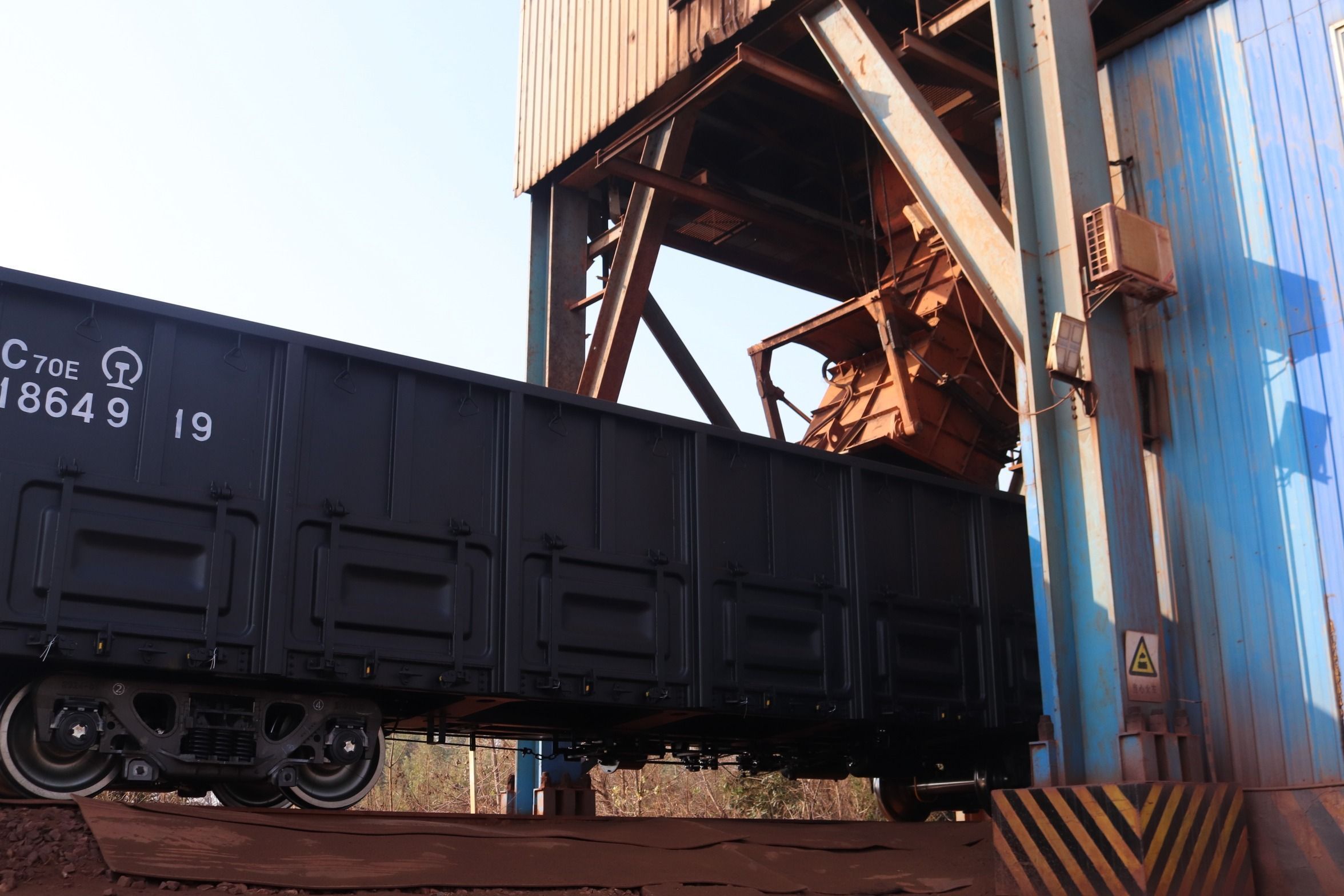 “铁水联运”班列正在装货。