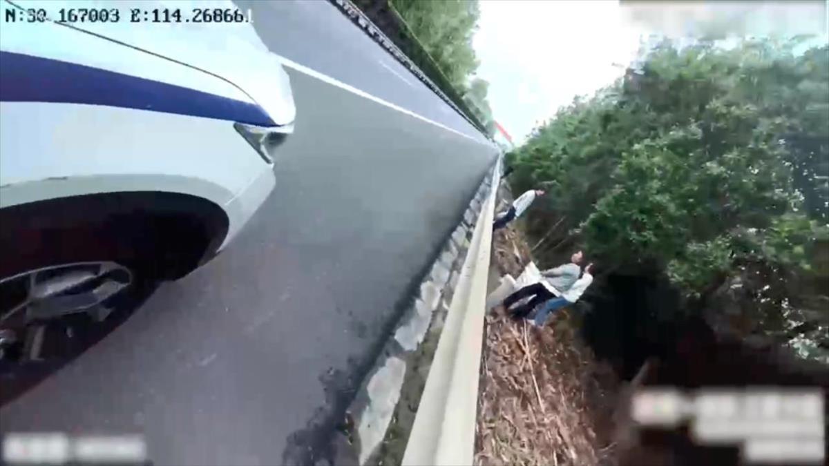 “你们在这儿做什么?行人严禁进入高速公路。你们这样做太危险了!”民警熊忠家严肃地说道。