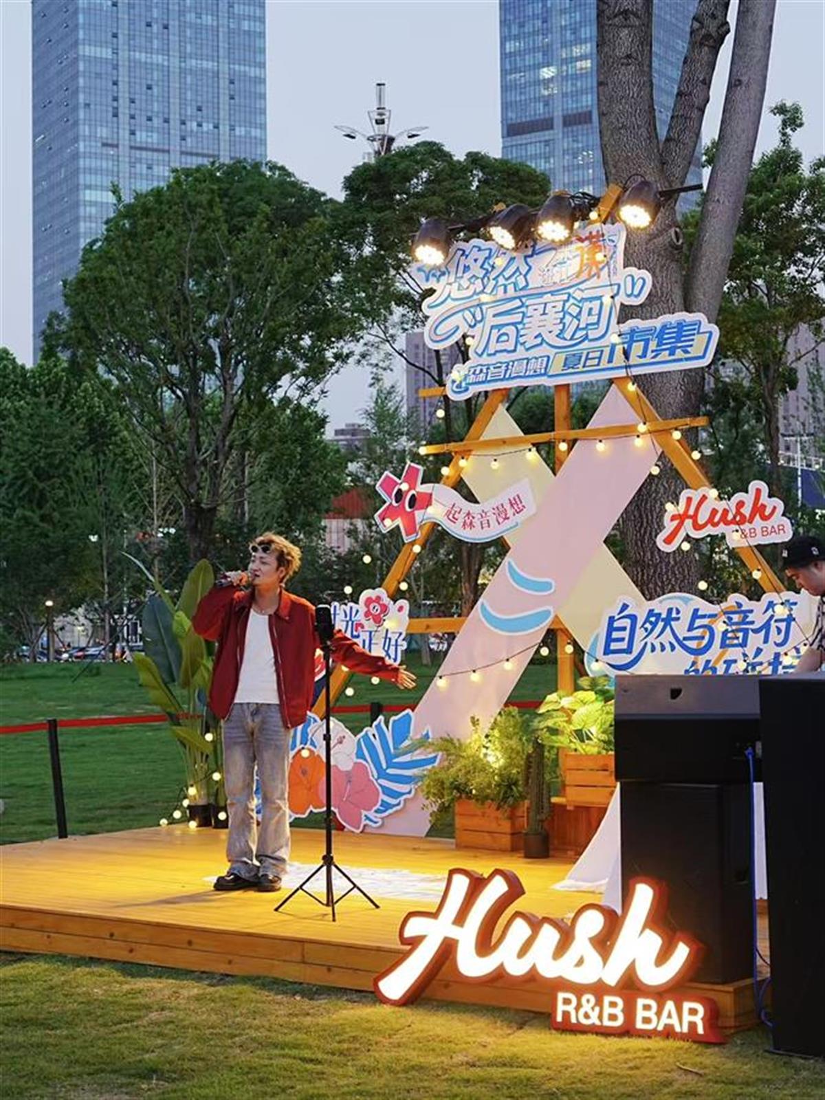 5月9日晚,“悠然后襄河公园·森音漫想夏日市集”活动在江汉区后襄河公园南区驿站前草坪浪漫开场。R&B演艺团队带来《三人游》《心跳》《Susan说》等二十余首耳熟能详的民谣,与市民们共同度过了难忘的初夏时光。