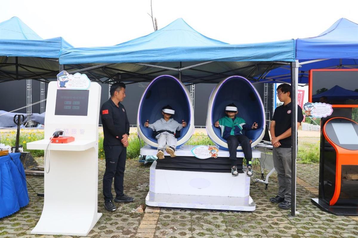 此外,活动现场还设置了“防灾减灾装备展示区”。通过机器人现场讲解自然灾害应急抢险救援装备,宣传防灾减灾知识。利用VR地震模拟器、烟雾逃生帐篷等设备,让市民沉浸式体验灾害场景,学习避险技能。