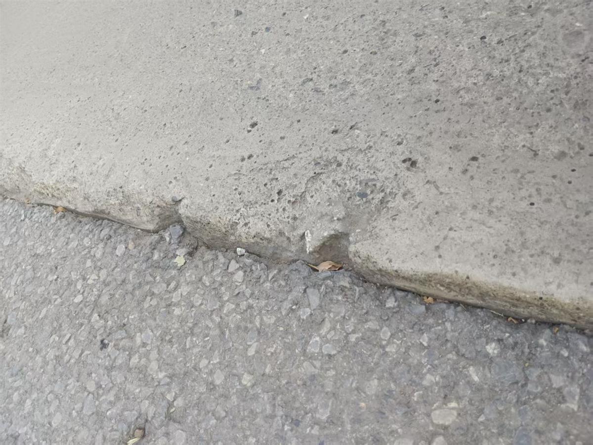 记者随后和刘女士来到周冲社区了解情况。社区工作人员蒋女士介绍,数年前,附近小区进行污水管道改造时,将高新东路部分路面进行了开挖,之后回填的水泥路面与马路连接处形成了一定落差,建设部门用沥青进行了修补。“可能是时间太久,沥青被过往的车辆碾坏后路面就出现了落差。”蒋女士介绍,社区也接到过居民反映有人在此路段摔倒的情况,但道路维修由城建部门负责。