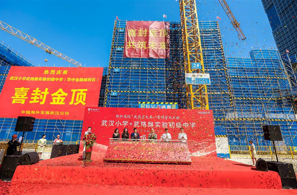 2025年5月11日9时08分,由中国海外发展武汉公司倾力打造的“武昌区九年一贯制学校”项目主体工程暨武汉小学+武珞路实验初级中学(华中金融城校区)(校名暂定)封顶仪式在武汉举行。当地职能部门、企业代表及各界嘉宾齐聚一堂,共同见证这一教育民生工程的里程碑时刻。