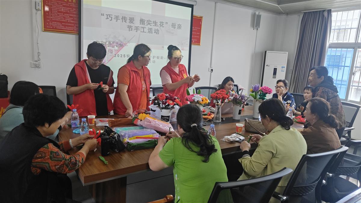 在母亲节来临之际,为弘扬中华民族孝亲敬老的传统美德,营造感恩母亲的温馨氛围,5月9日上午,武汉长江新区仓埠街道骑龙街社区携手社区老年人服务中心精心策划了一场别开生面的“手工花与艾捶DIY”主题活动,让辖区居民通过亲手制作饱含心意的节日礼物,传递对母亲的浓浓爱意。