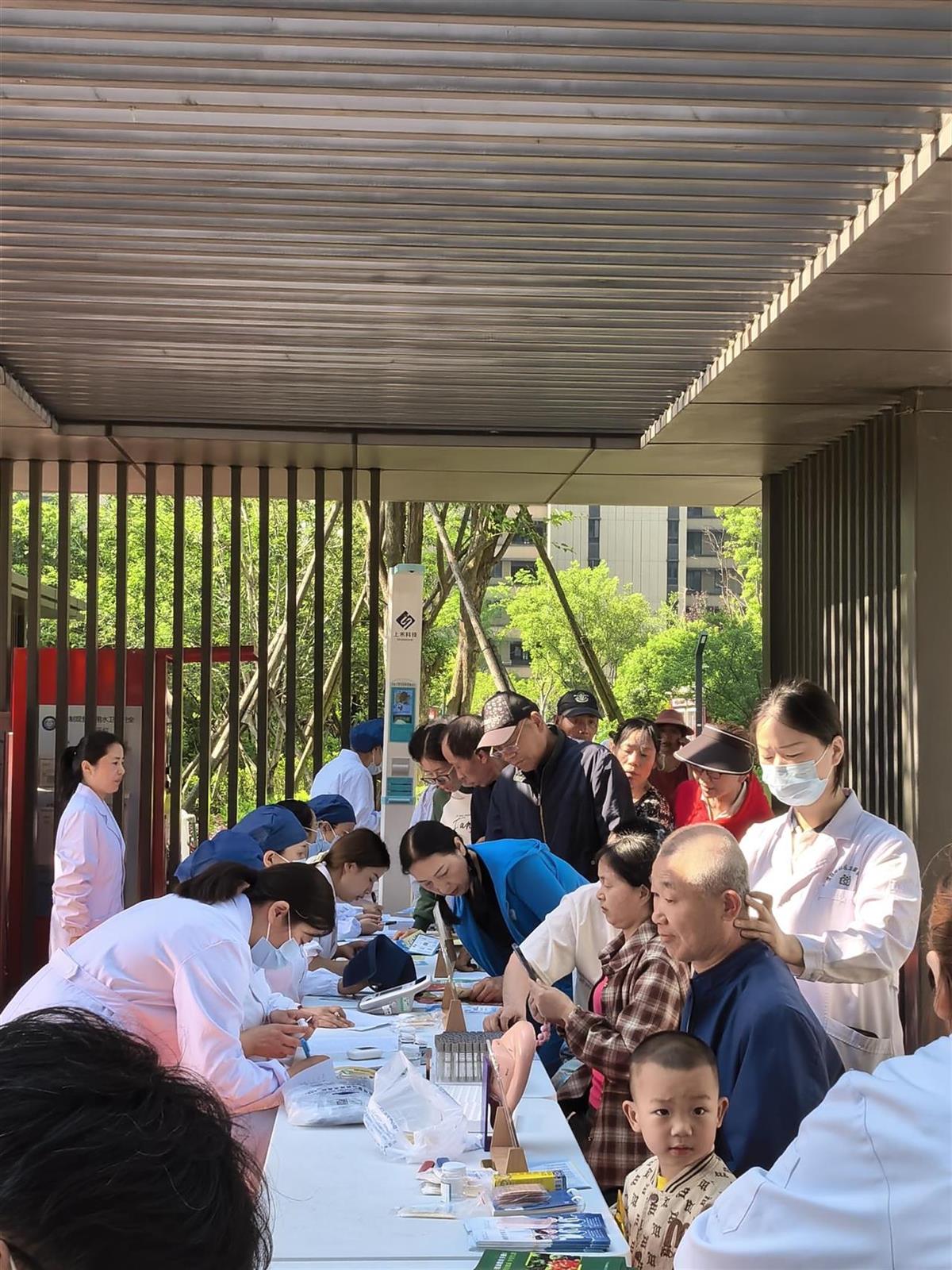 活动虽于5月11日八点开始,但早上七点多工作人员就早早抵达活动现场并精心将现场设置了多个功能区域,包括现场登记区、健康体检区、家庭医生签约区和专家咨询区、宣传健教区等。随着居民们的陆续到来,现场氛围逐渐升温。只见现场登记区工作人员对前来义诊的居民井然有序进行登记,并耐心细致地询问居民的身体状况以及相关信息;健康体检区的医护人员正热火朝天地为居民们测量身高体重、量血压、抽血;咨询区的全科专家们为居民们答疑解惑,提供专业的健康建议和治疗方案;中医专家则是现场为居民们进行把脉、艾灸、穴位按摩,并手把手教授居民们中医相关保健知识,使居民们零距离感受中医的魅力,让中医药技术指导居民的日常生活。