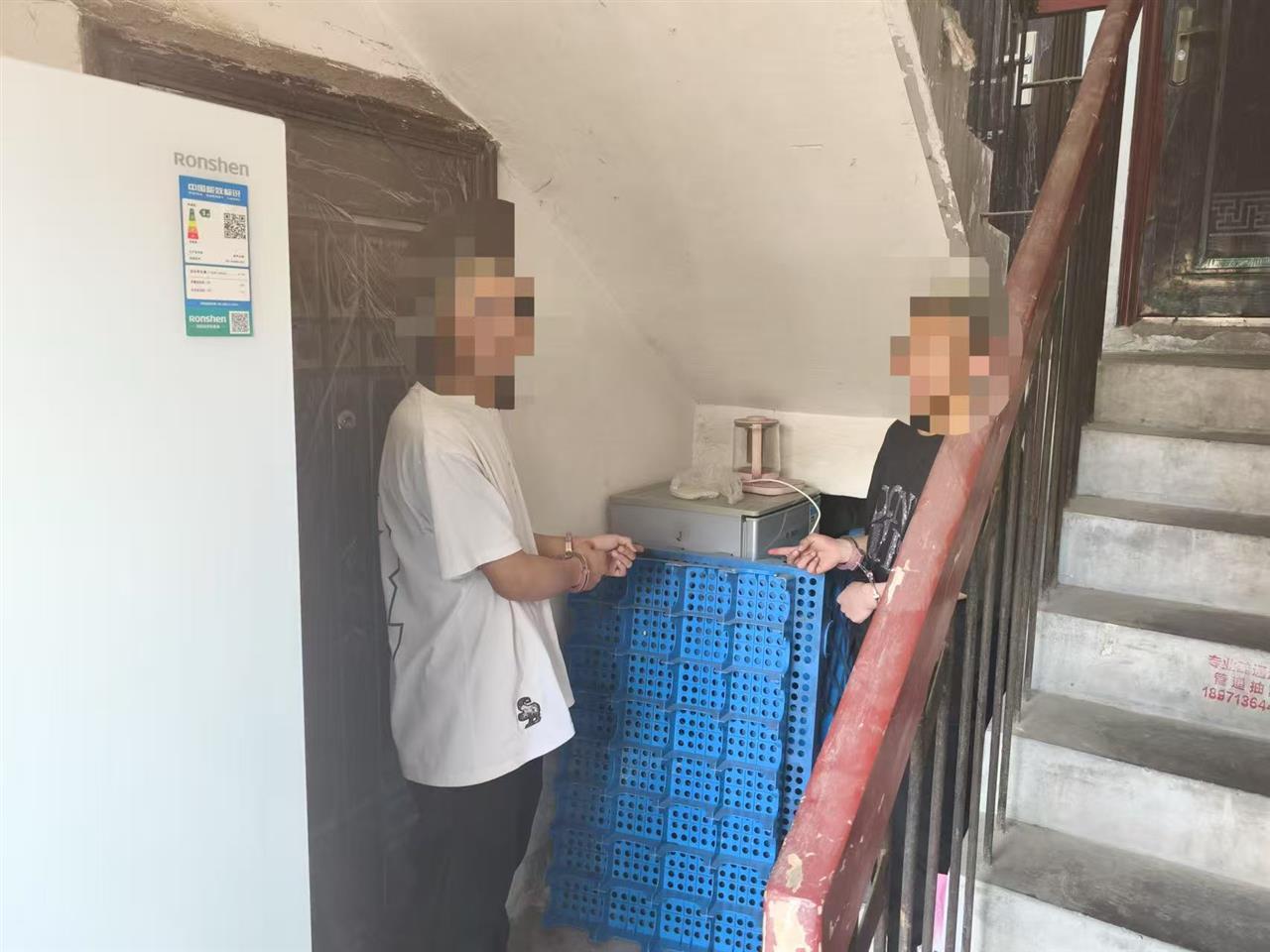 让人意想不到的是,案件在4月26日迎来转机。当晚10点,李先生刚躺下就听见楼下铁门响动,冲下去就撞见两名陌生男子在楼梯间偷摸翻找,他立即报警。原来李先生家上次被盗后设下“迷魂阵”——将保险柜搬回家中,又在楼梯间原地放了个相似尺寸的冰箱。两贼摸黑将旧冰箱当成保险柜,以为又能“捞一笔”,打开冰箱发现上当,慌忙翻墙逃窜。