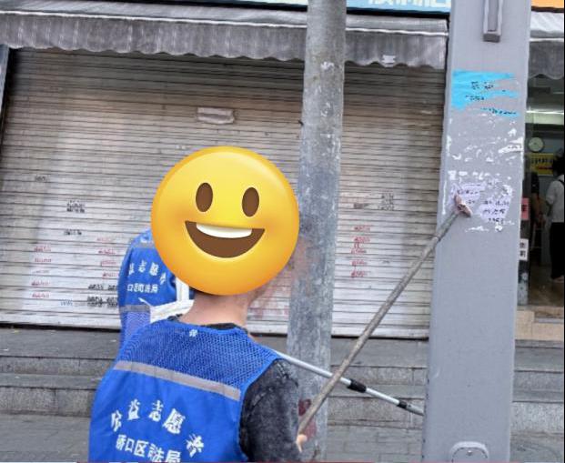 4月27日上午9时,汉正街多福路上,荣华街道社矫对象P某与一名工作人员并肩清理墙面“牛皮癣”广告。两人身着同款印有“公益志愿者”字样的蓝背心,汗水浸透了衣襟。“以前总觉得自己身上贴着‘标签’,但今天和司法局的工作人员一起劳动,听到居民群众的感谢,感觉自己被社会重新接纳了。”他不禁感慨道。同样在古田桥下,古田街道社矫对象C某擦拭路灯时,偶遇江滩边晨练的市民递来的矿泉水:“4月的江滩因为你们的劳动更加美丽!”硚口区社区矫正工作管理局工作人员表示:“统一的‘司法蓝’让社矫对象在劳动中感受平等与尊严,这正是‘矫心正行’的关键。”
