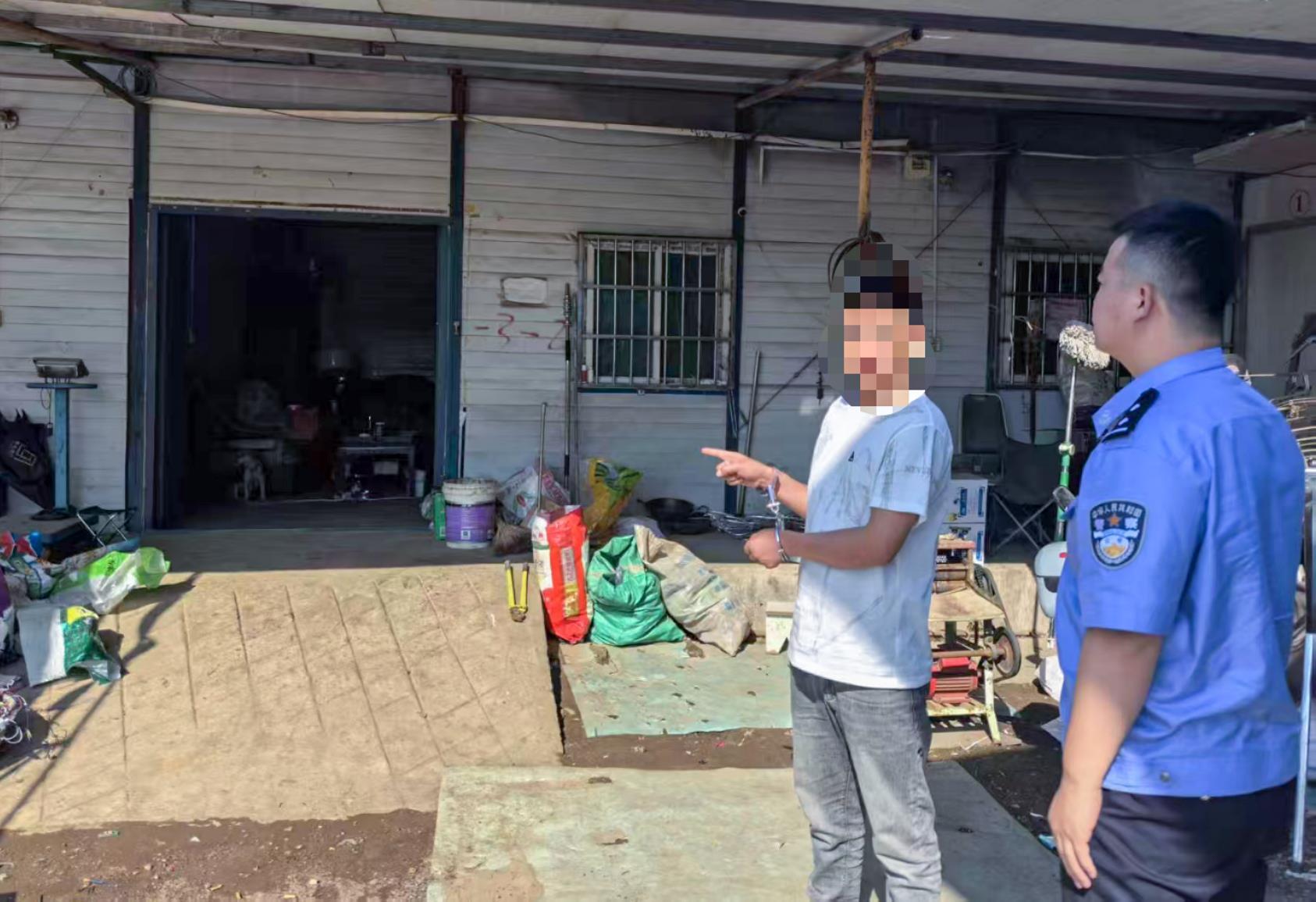 接到报案后,分局迅速成立专班展开调查。通过调看案发时段监控录像发现,4月23日22时许,一名身穿黄色马甲、头戴黄色帽子的男子曾在案发现场调整了某处监控探头的角度。24日20时许,该男子与另一名身穿黑色衣服、头戴红色帽子的男子再次出现在案发现场,随后,身穿黑色衣服、头戴红色帽子的男子将该处监控探头恢复到正常角度。由此,民警判断这两名男子具有重大作案嫌疑。