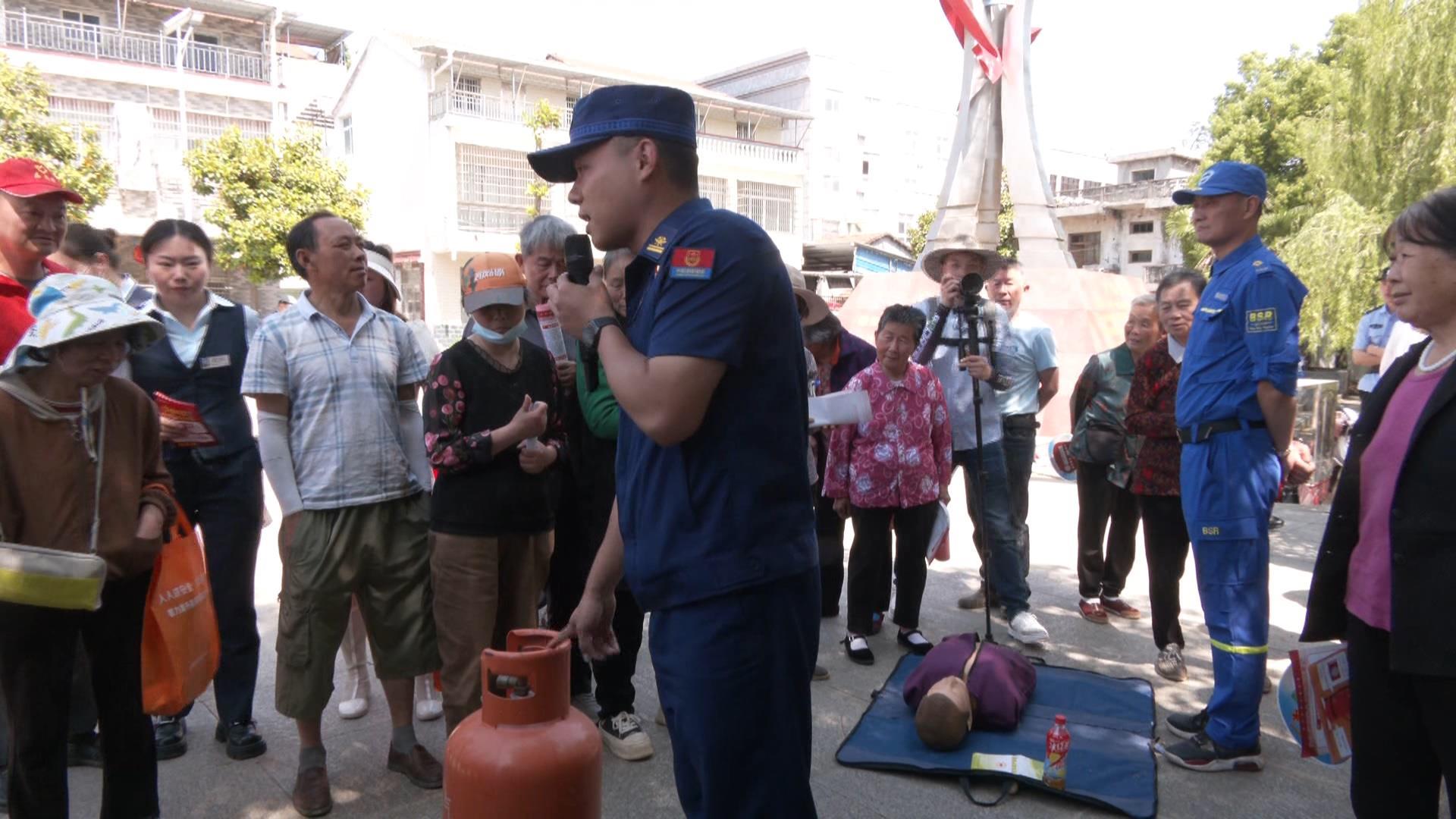 广场另一侧,救援装备体验区人头攒动。新洲区消防救援大队队员手持户外救援背包、热成像仪等装备,向围观群众逐项讲解操作步骤。燃气罐知识讲解中,居民们耐心倾听,不时举起手机记录下应急处置的知识点。