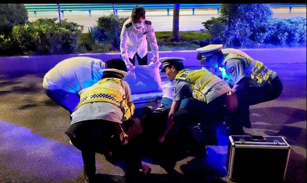 了解情况后,陈宇迅速赶赴现场,发现一名三十多岁的男子躺在地上,表情痛苦,行动困难。他立即上前查看伤情,发现该男子左边锁骨错位,疑似骨折。另外腿上、胳膊上和头上均有不同程度的擦伤。陈宇轻声安抚伤者情绪,同时拨打120急救电话,清晰说明事发位置和伤者情况,确保救援高效展开。在等待救护车期间,陈宇始终守护在伤者身旁,密切观察其身体状况,并采取必要措施避免二次伤害。不久后,120急救车抵达现场,陈宇又主动协助医护人员将伤者稳妥抬上担架,送上救护车。直到目送救护车驶离,他才安心返回岗位,继续投入夜间执勤工作。