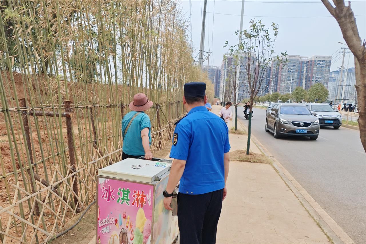 “有些小摊贩看这里人多,想蹭热度摆地摊,我们及时劝阻,引导到1号停车场那边的临时安置点。”五里界综合执法中心一位队员说道。