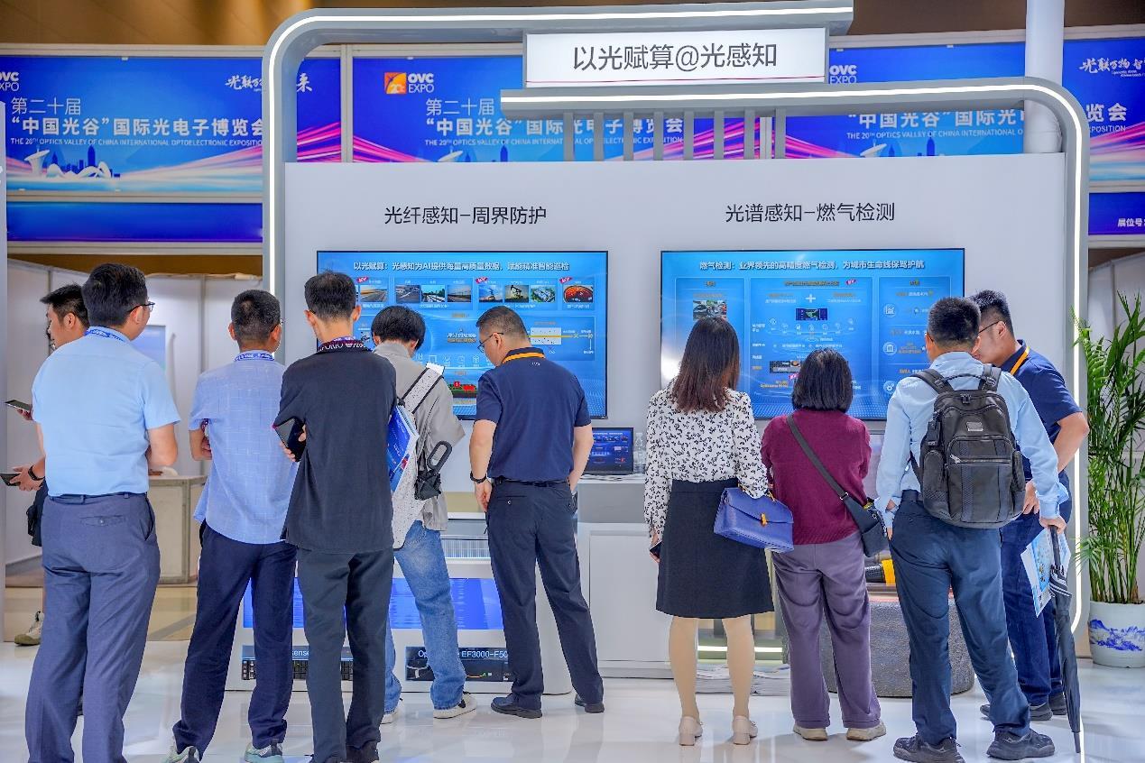 在第二十届“中国光谷”国际光电子博览会(以下简称“光博会”)期间,华为以“无光,不AI:全光网加速AI普惠千行万业”为主题,在360平米展区集中展示了一系列全新的光通信和感知产品。本次华为光博会展区分为“以光强算、以光促算、以光惠算、以光赋算”四大子展区,覆盖数据中心、行业通信网、园区、周界防护、燃气泄漏检测、视觉感知场景,助力千行万业加速迈入智能化时代。