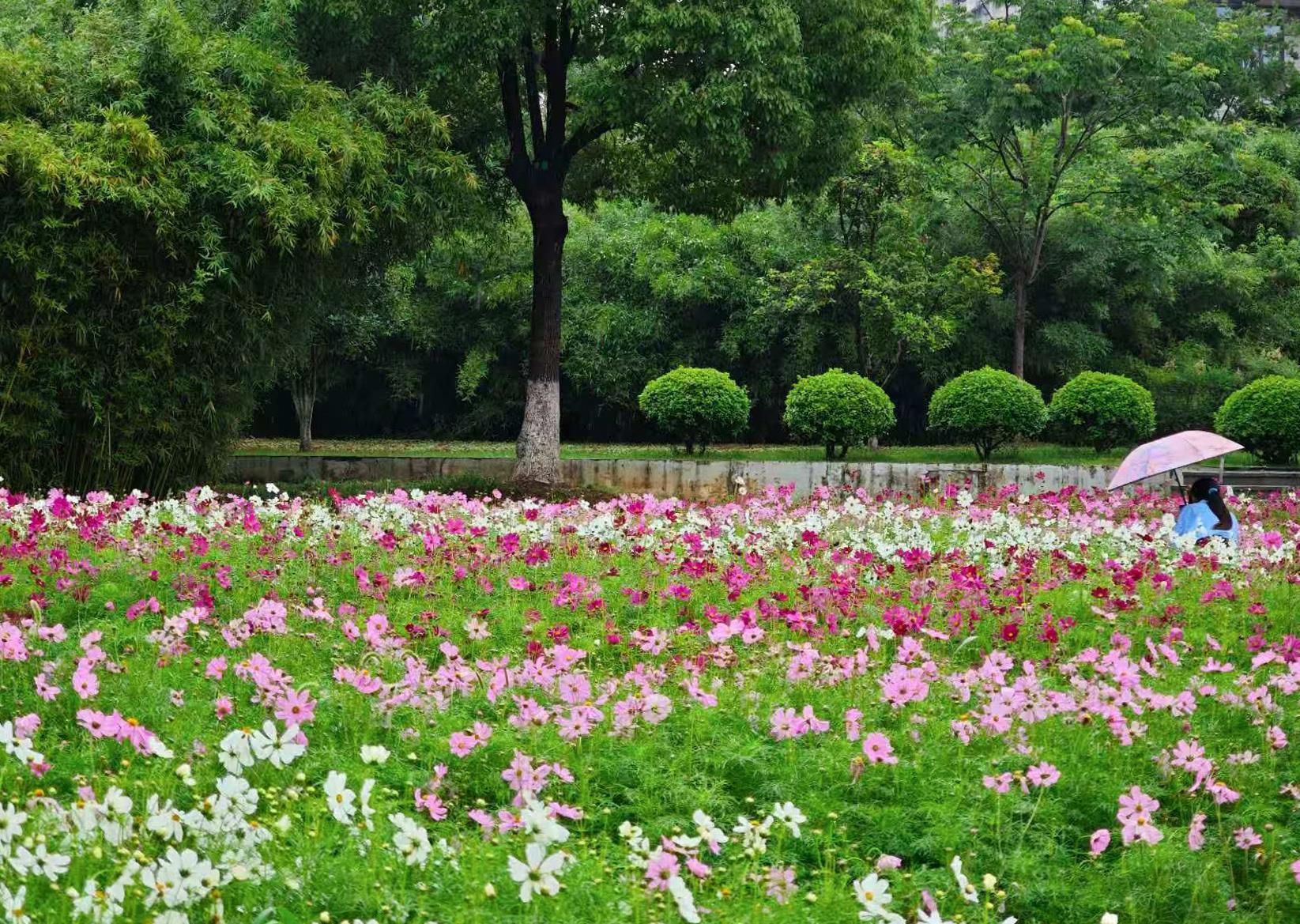 韵湖公园:波斯菊绘就生态惠民新图景