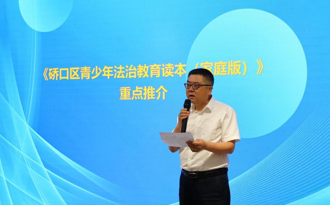 硚口区司法局党组书记、局长王朝晖现场推介硚口区青少年法治教育系列读本,并重点介绍家庭版读本编写过程。2024年,区司法局、区教育局、区妇联、区法学会乘势而上,续编青少年法治教育系列读本,将青少年法治教育责任主体聚焦到家庭,邀请来自区法院、区检察院、德和衡律所、维力律所、湖北警官学院经验丰富的法律工作者共同编写家庭版读本,结合具体案例从法治角度给出家庭教育指导建议,引导父母“依法带娃”。