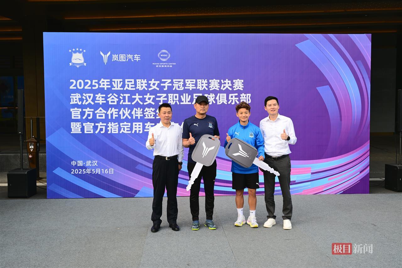 仪式现场,武汉车谷江大女子职业足球俱乐部主教练常卫魏、武汉车谷江大女足队员王霜接受了定制车钥匙,岚图汽车作为球队在赛事期间的官方指定用车,为女足姑娘们的征战之路保驾护航。