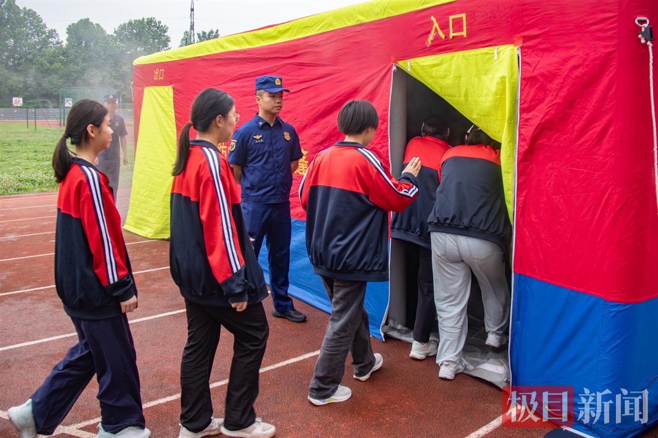 在新洲区,消防员走进新洲一中开展应急疏散演练和防灾减灾培训。随着警报声的拉响,应急疏散演练正式开始,消防员迅速组织学生有序疏散,提醒同学们保持冷静,在弯腰的同时利用书包保护好头部,并用湿布掩住口鼻快速撤离至安全区域。