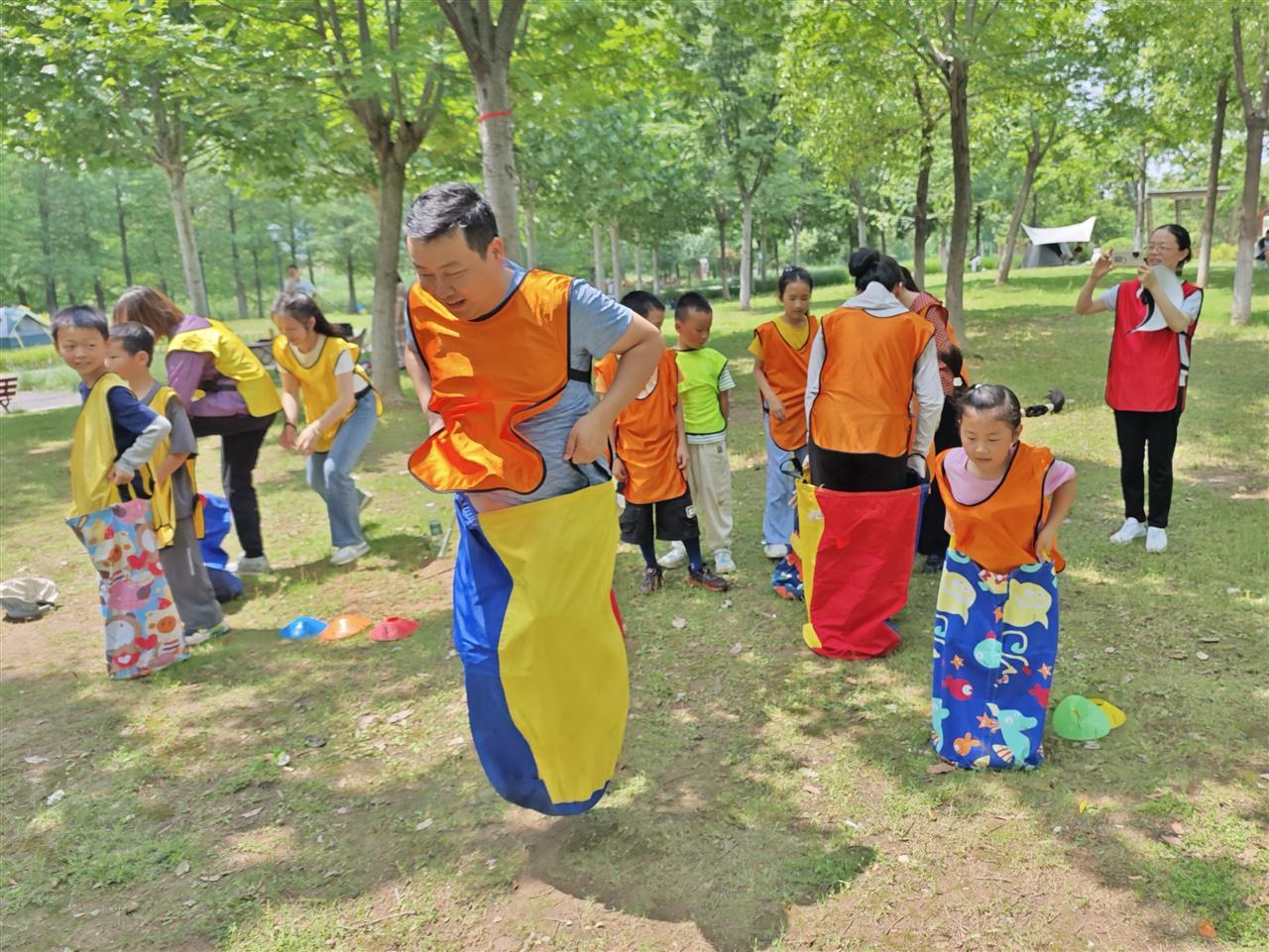 短暂的休息间隙,家长与孩子们围坐分享趣事,社区志愿者贴心递上饮用水,公园草坪化作一片亲昵的交流天地。紧接着的“袋鼠接力赛”中,亲子家庭手提布袋,化身蹦跳的“袋鼠”,接力传递中不少家长因步伐笨拙“摔”出萌态,引得全场欢笑连连。而压轴的“枕头大战”彻底释放童心,五彩“水果”枕头在空中划出弧线,孩子们与父母“组队作战”,欢呼声与尖叫声交织成初夏最动感的乐章。