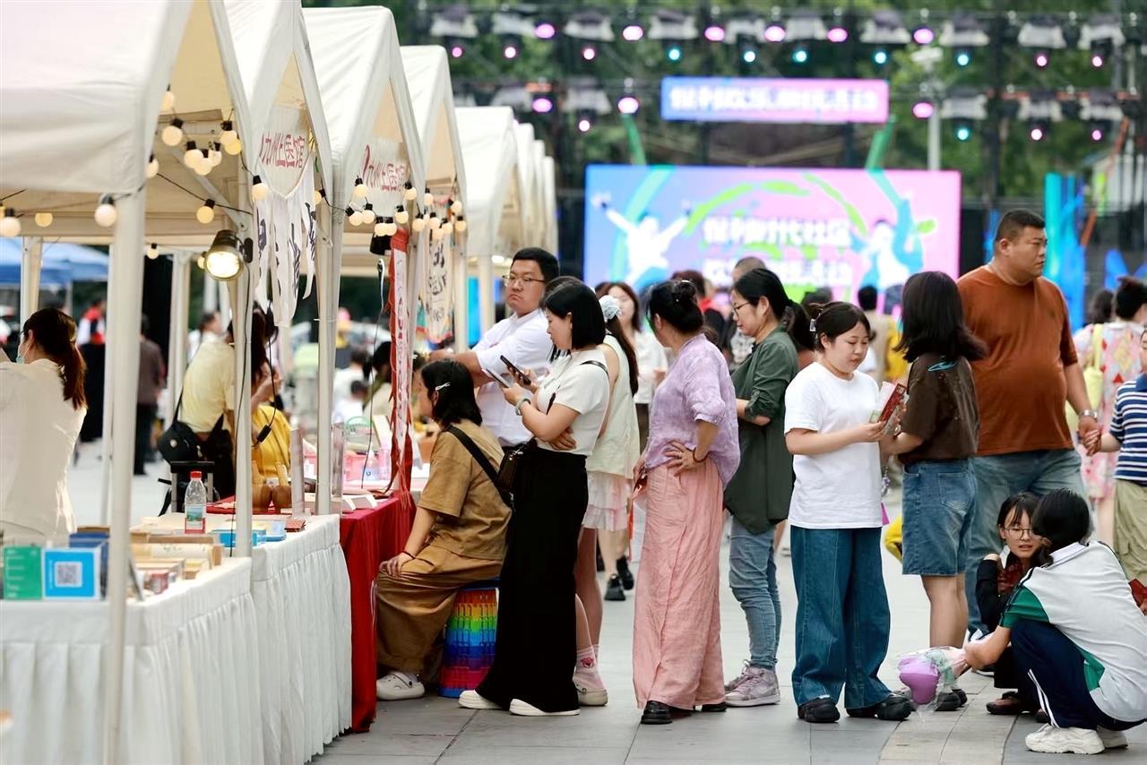 17日,非遗与摇滚碰撞出火花。华夏学院非遗团队的剪纸摊位前,挤满了好奇围观的居民。隔壁舞台,青岛啤酒乐队的摇滚秀掀起又一轮高潮,年轻人在荧光棒的海洋中欢呼雀跃,沉浸在这场社区狂欢之中。