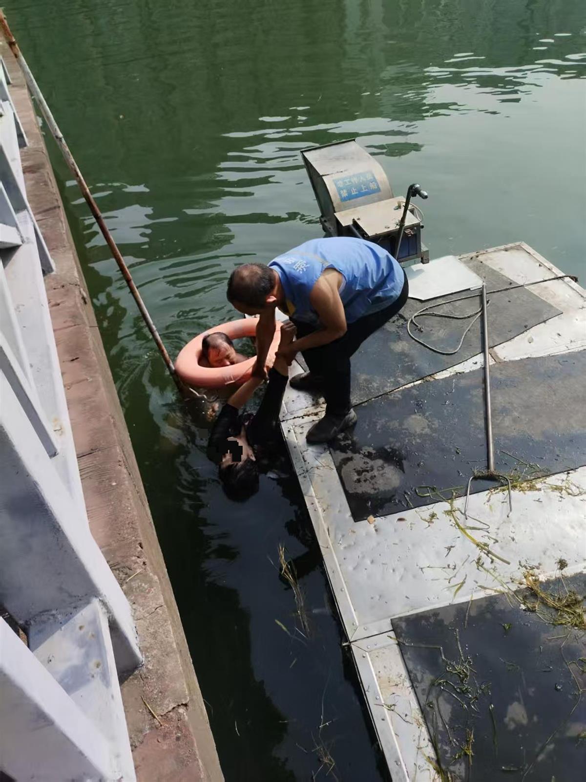 彭先生急忙将手里的扫帚递过去:“快抓住,我拖你上来。”但女子已经在湖中“打晃晃”,身体无法自控,没能抓住扫帚。彭先生转身从旁边的护栏处抓起2个救生圈扔了过去,并大声呼喊远处的小船赶紧过来救人。