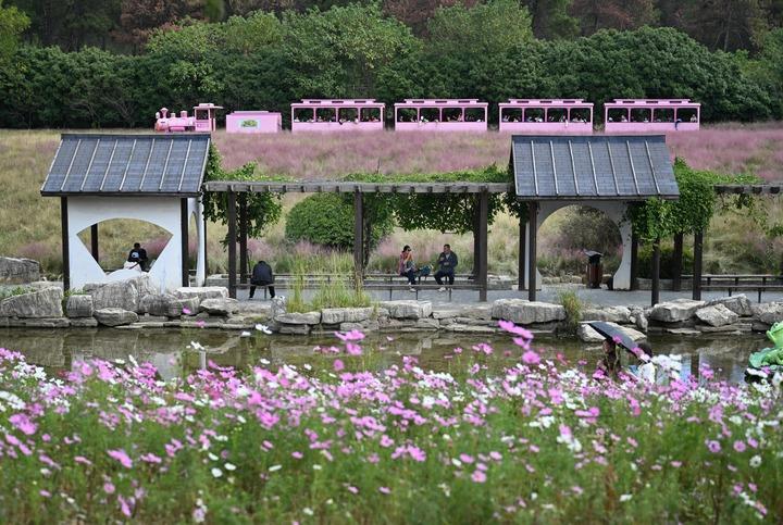 游客在黄陂木兰草原休闲游玩(新华每日电讯记者程敏摄)