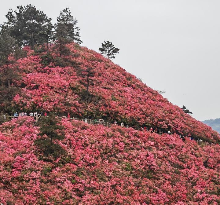 游客在木兰云雾山观赏杜鹃花(梁建强摄)