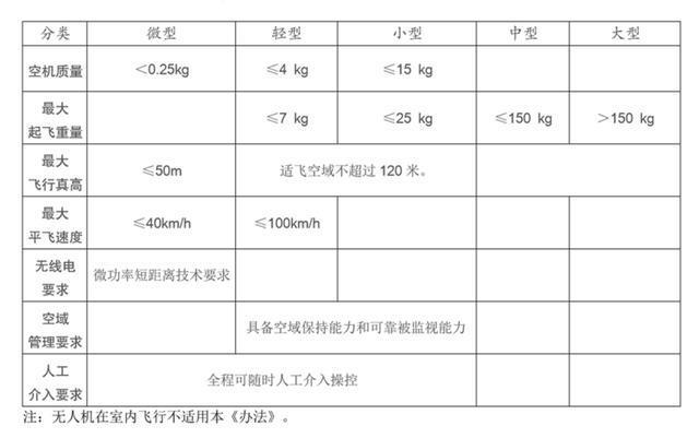 《办法》将民用无人驾驶航空器(俗称“无人机”)按照性能分为微型、轻型、小型、中型和大型5个类别。在日常使用中,首先要确认自己无人机所属的类别。因为不同的类别,对应的飞行空域、驾驶执照资质、强制保险投保、飞手民事行为能力等管理要求各有不同。