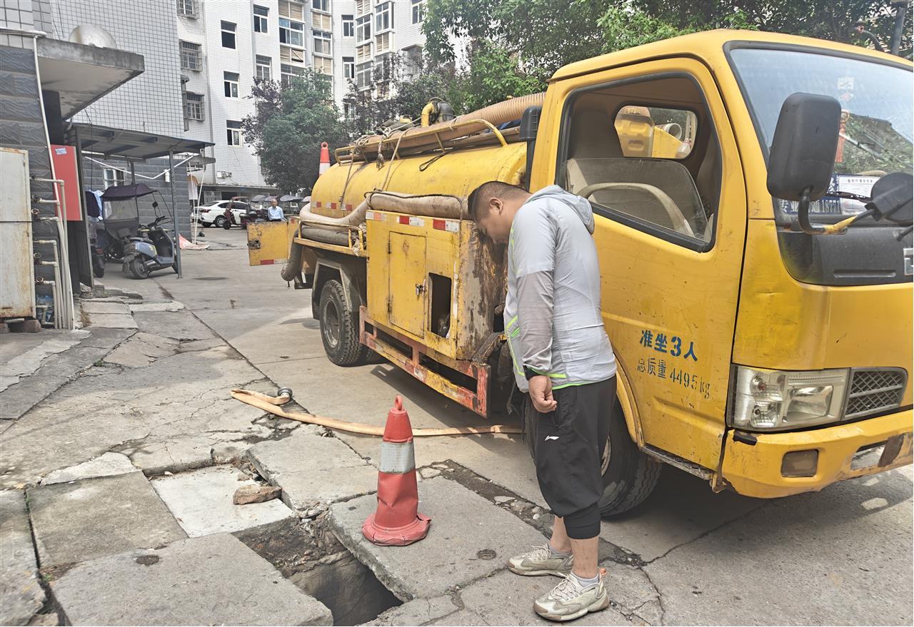 施工人员先是利用探测仪精准定位堵塞点,随后使用高压水枪对管道内部的淤泥、杂物、油污等堵塞物进行强力冲洗,确保堵塞物被彻底瓦解清除。
