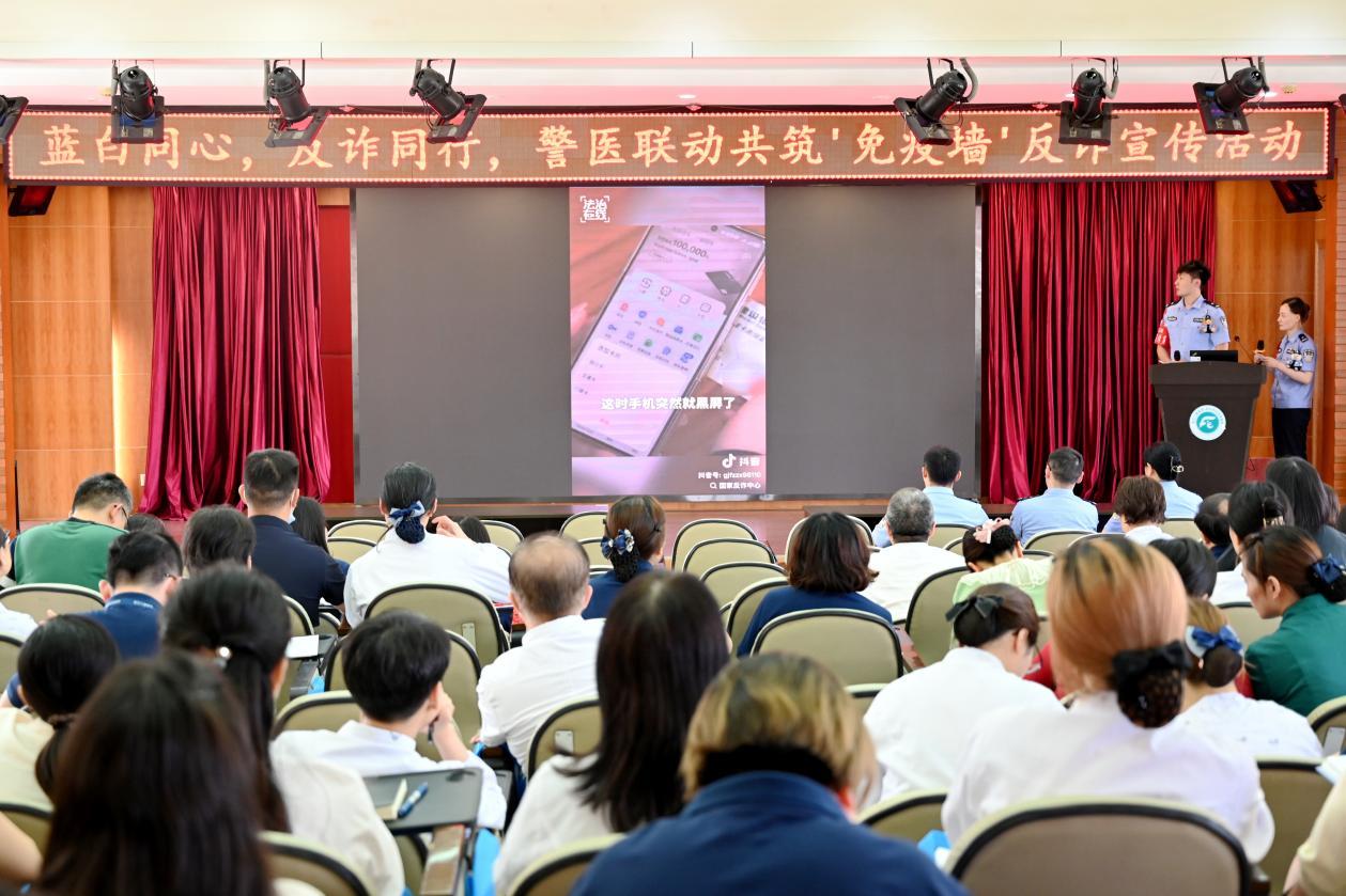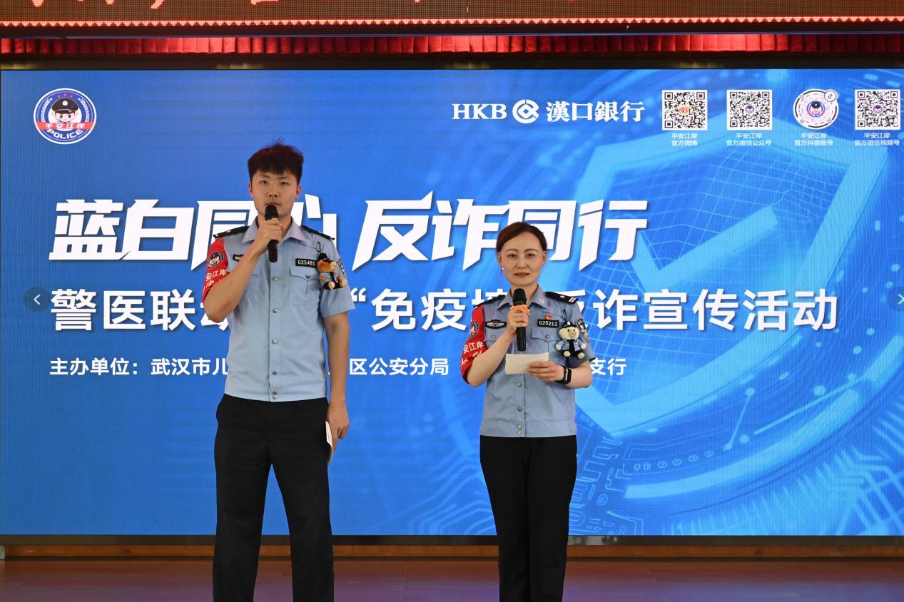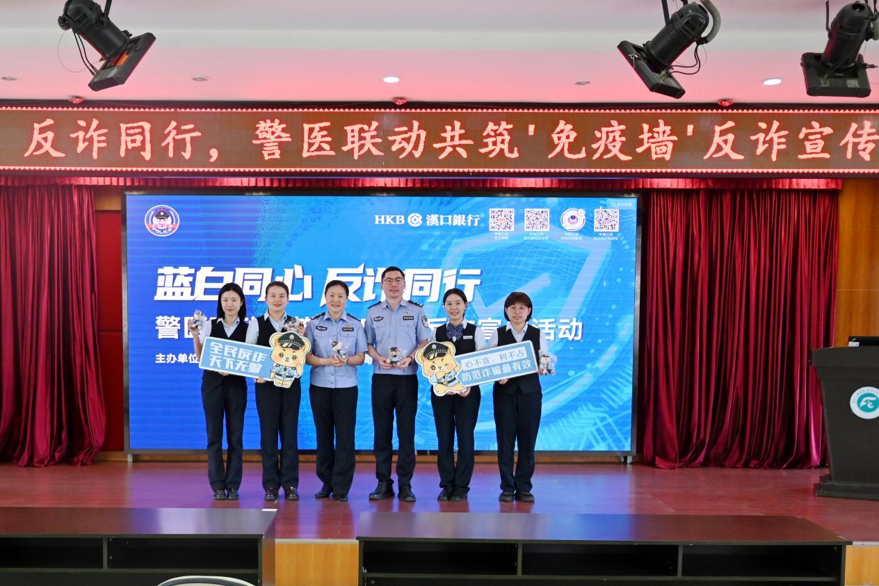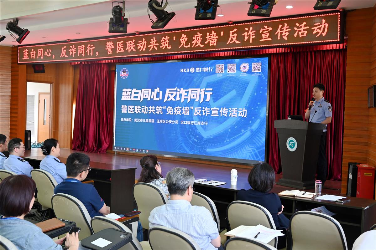 5月19日,武汉市公安局江岸区分局反电诈中心携手汉口银行江岸支行走进武汉市儿童医院,开展了一场主题为“蓝白同心反诈同行,警医联动共筑‘免疫墙’”反诈宣传活动。武汉市儿童医院医护人员300余人参与了活动。