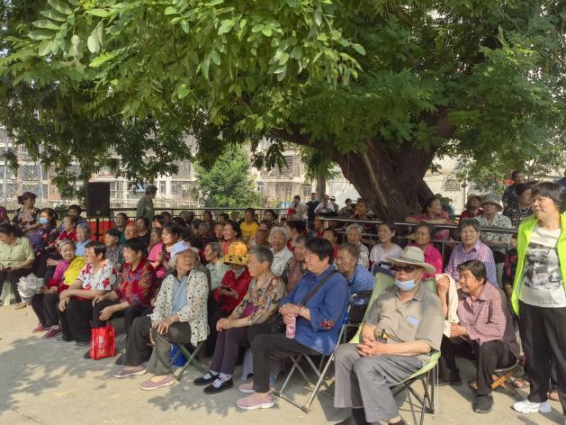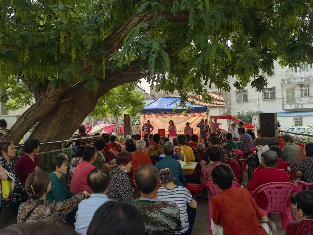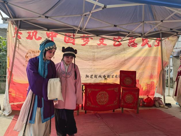 台下,居民们或坐或站,目不转睛地沉浸在剧情中。每到精彩处,掌声、喝彩声此起彼伏。趁着表演间隙,社区工作人员手捧竹篮穿梭在人群间,为居民送上鸭蛋、皮蛋、粽子等端午特色食品,将节日的温暖送到每个人手中。68岁的老戏迷李大爷品尝着粽子,笑得合不拢嘴:“好久没这么热闹地看大戏了,在家门口就能过足戏瘾,这样的活动真接地气!”