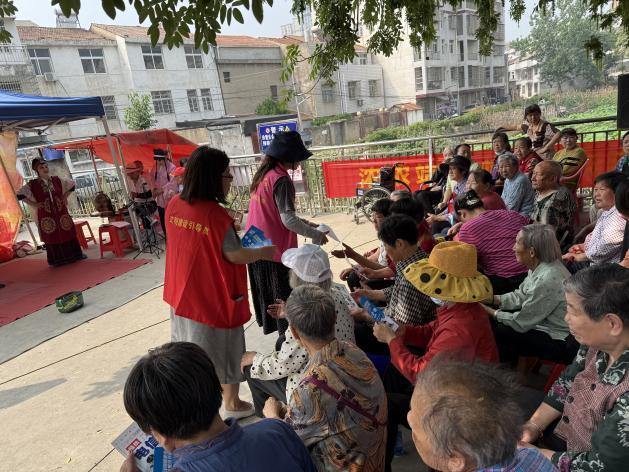 在活动室粽香四溢的同时,双塘湾广场上绿荫如盖,一场韵味十足的楚剧表演在此拉开帷幕。兴盛社区特邀新洲区楚剧团的专业演员,为居民带来《荞麦馍赶寿》《郭丁香》等经典剧目。演员们身着精美戏服,迈着优雅台步登上戏台,清亮婉转的唱腔在广场上空回荡。