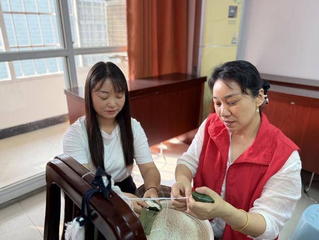参赛选手中,既有经验丰富、手法娴熟的“巧姨”们现场示范教学,也有初次尝试的年轻人在身旁虚心请教折叶、填米、捆扎的技巧。大家你一言我一语,相互交流着心得,欢笑声此起彼伏。