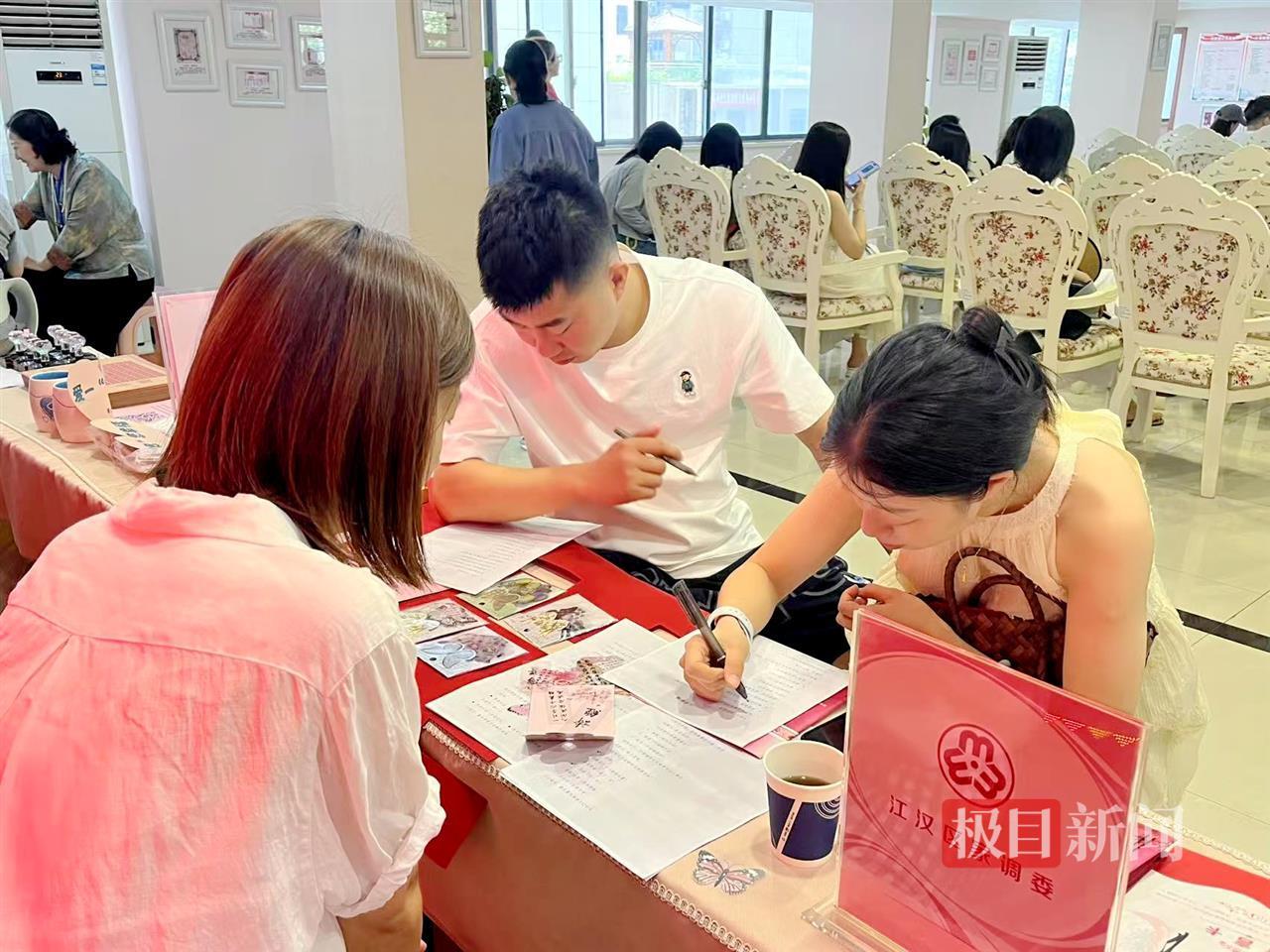 此外,江汉区民政局婚姻登记处还联合壹方心理研究院推出“汉唐新礼·花钿寄情”主题婚俗活动,现场开展了婚姻家庭辅导讲座、楚风拼图互动等活动,邀请婚姻专家为新人们讲解婚姻家庭中的相处之道和责任担当,帮助他们树立正确的婚姻观,受到新人们的一致好评。