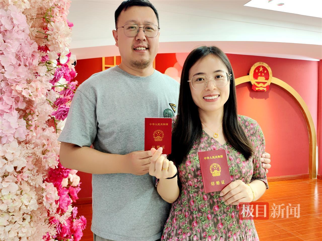 “5月20日的谐音是我爱你,我们特地选的这个日子,觉得很有意义。”段先生告诉记者,他们来武汉旅游后研究了新政策,发现连户口本都不用带,当即决定选个好日子领证。