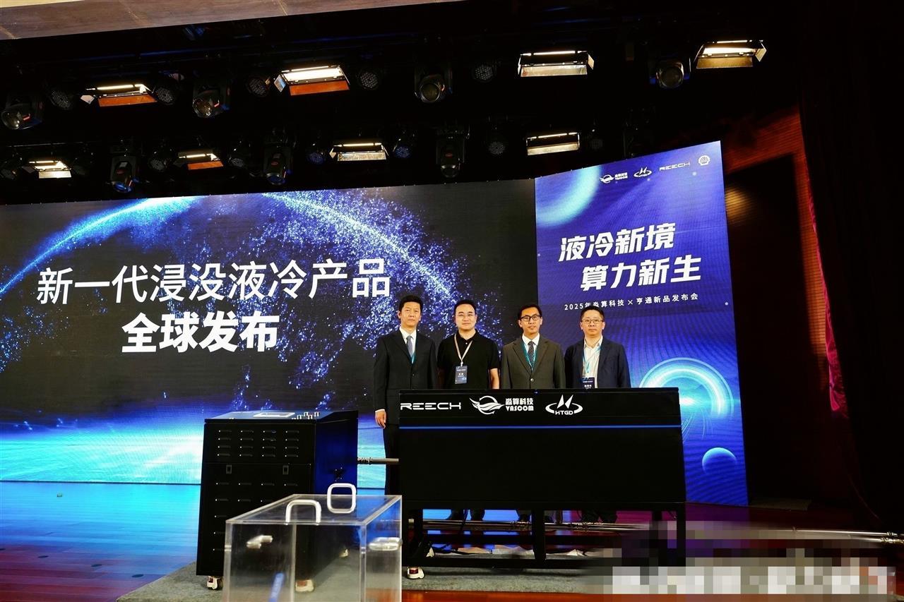 近日,2025年淼算科技×亨通新品发布会在北京举办。会上,武汉光谷企业淼算科技创始人CEO徐彦斌、亨通集团副总裁陆春良、睿启服务器销售副总经理龙总、壳牌中国润滑油技术总经理崔大龙共同揭幕新一代浸没液冷服务器解决方案。