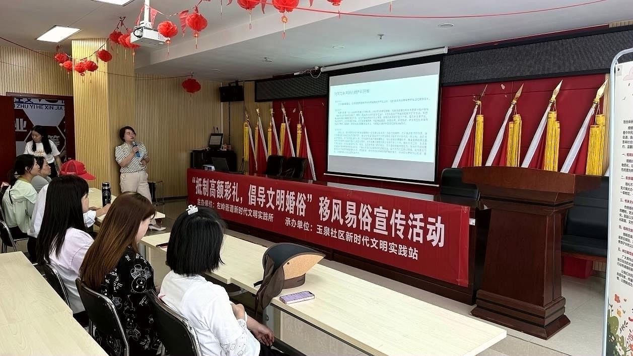 5月20日,武汉东湖高新区左岭街新时代文明实践所以520婚姻登记高峰期为契机,联合玉泉社区新时代文明实践站开展“抵制高额彩礼、倡导文明婚俗”移风易俗宣传活动,通过视听结合、法理相融、文艺浸润的形式,吸引众多居民参与,掀起文明婚俗新风尚。