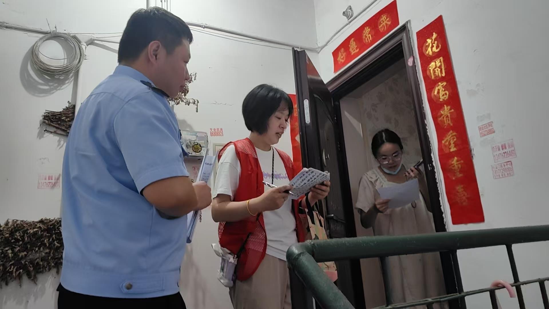 夜幕降临,由街道工作人员、民警和志愿者组成的多个小组,穿梭在欣城社区的楼栋间。每敲开一户家门,工作人员都笑着和居民拉家常:“王女士,最近小区里有没有啥可疑情况?要是发现陌生人聚集频繁进出,一定记得联系我们!”大家不仅仔细排查是否存在涉毒迹象,还认真登记家庭人员信息,确保情况摸得清、底数查得明,同时鼓励群众发现涉毒线索及时举报。