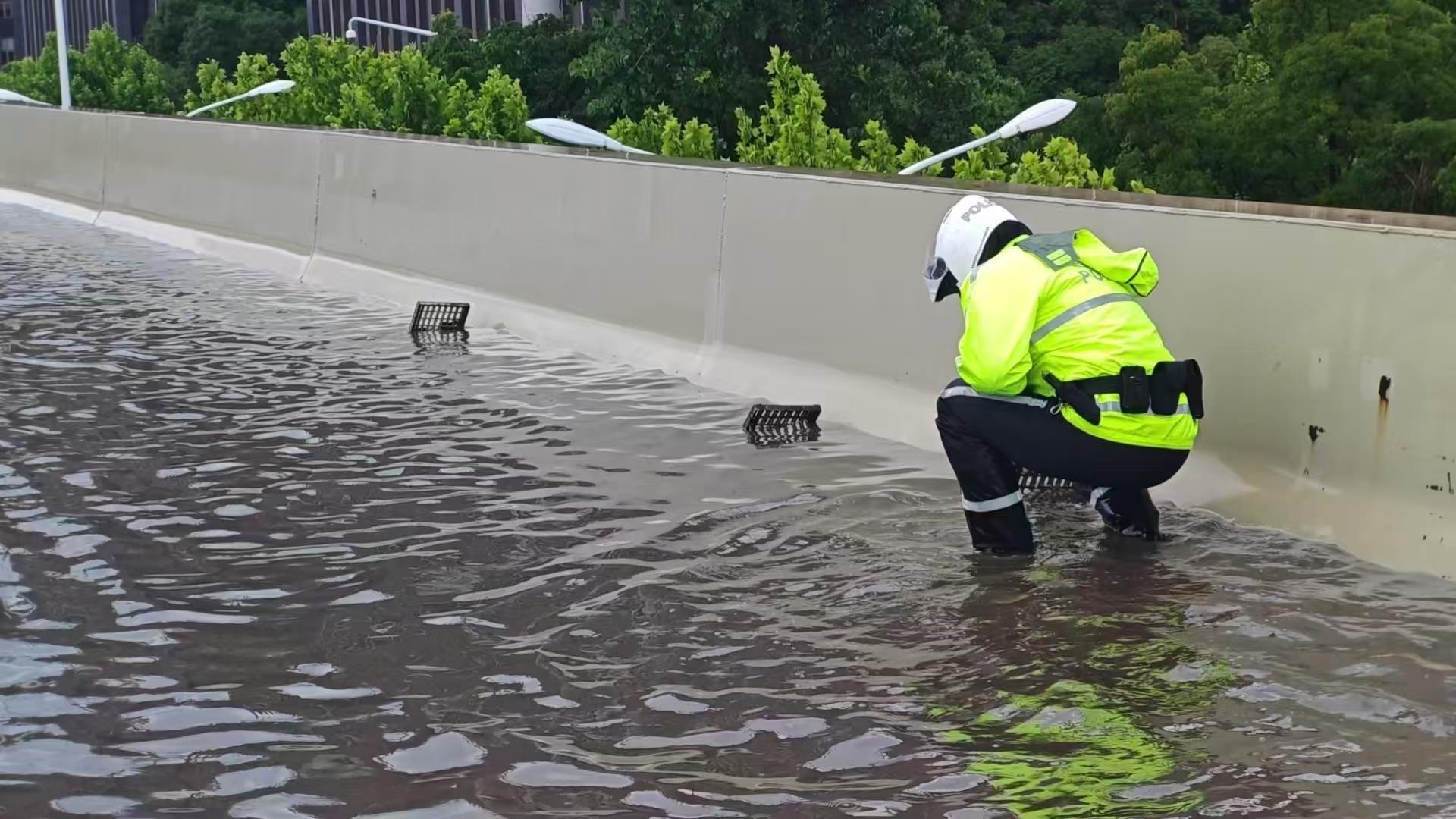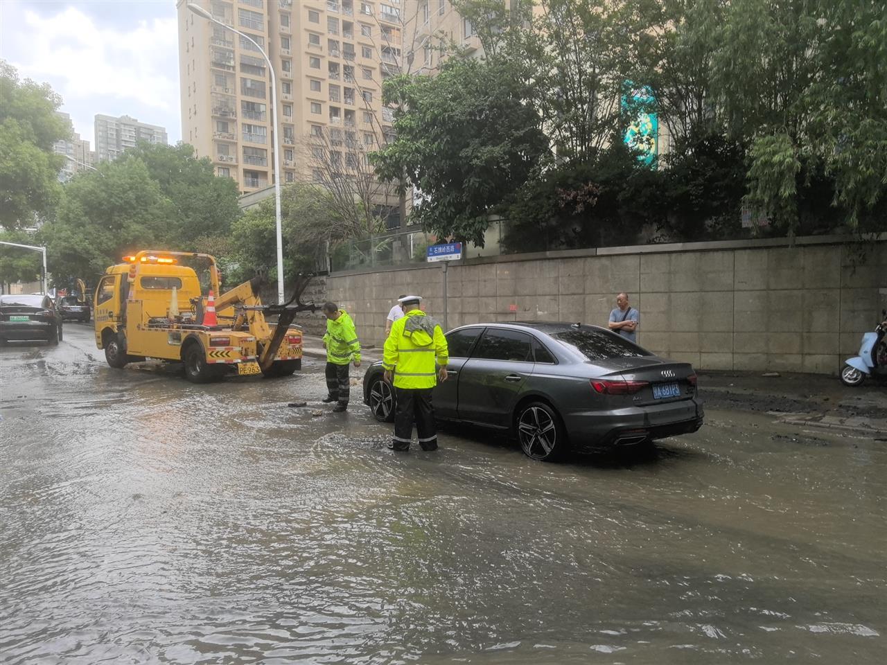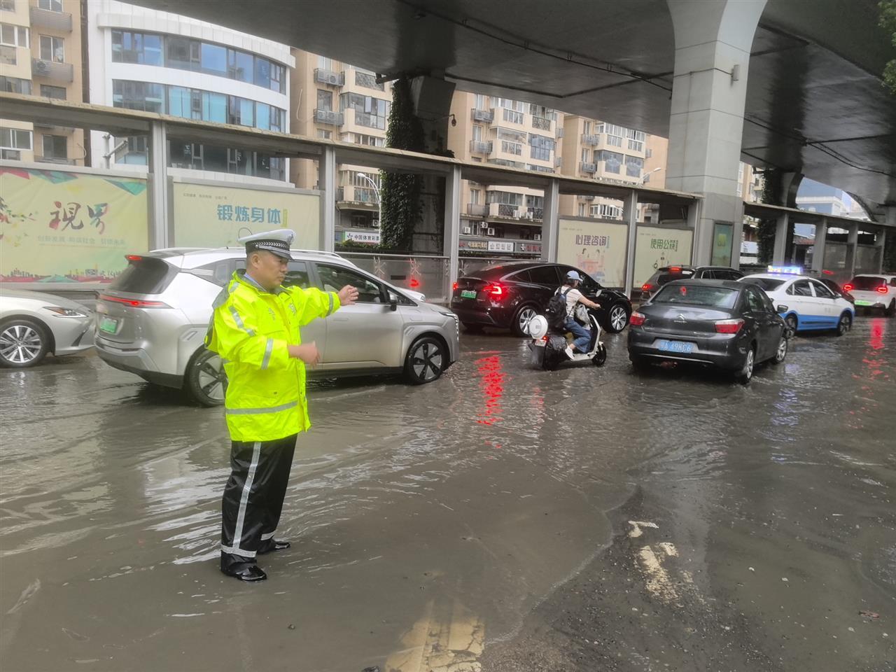 对于渍水点位,交管部门按照“一点一策一警一救援车”的方针,组织大队交警、应急救援车辆迅速处置,此外全市交警还立足路面疏导交通,并对倒树、车辆熄火、擦碰事故等突发警情进行处置,保障道路通行。