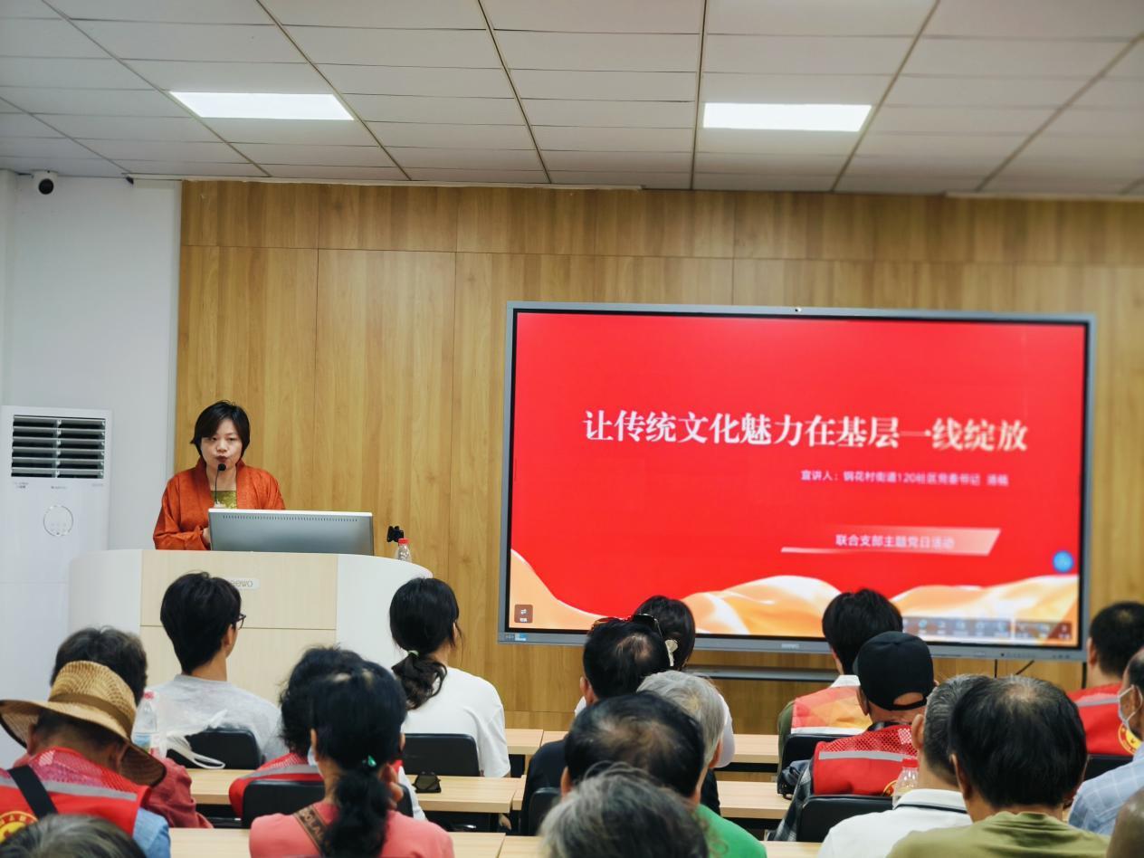活动首站,社区居民同湖北中医药大学的学生志愿者们在“一站式学生社区”进行参观交流。120社区党委书记汤铭围绕“传统文化在基层治理中的实践价值”作专题宣讲,系统阐释“以文化人、以文聚力”理念如何转化为社区治理效能。