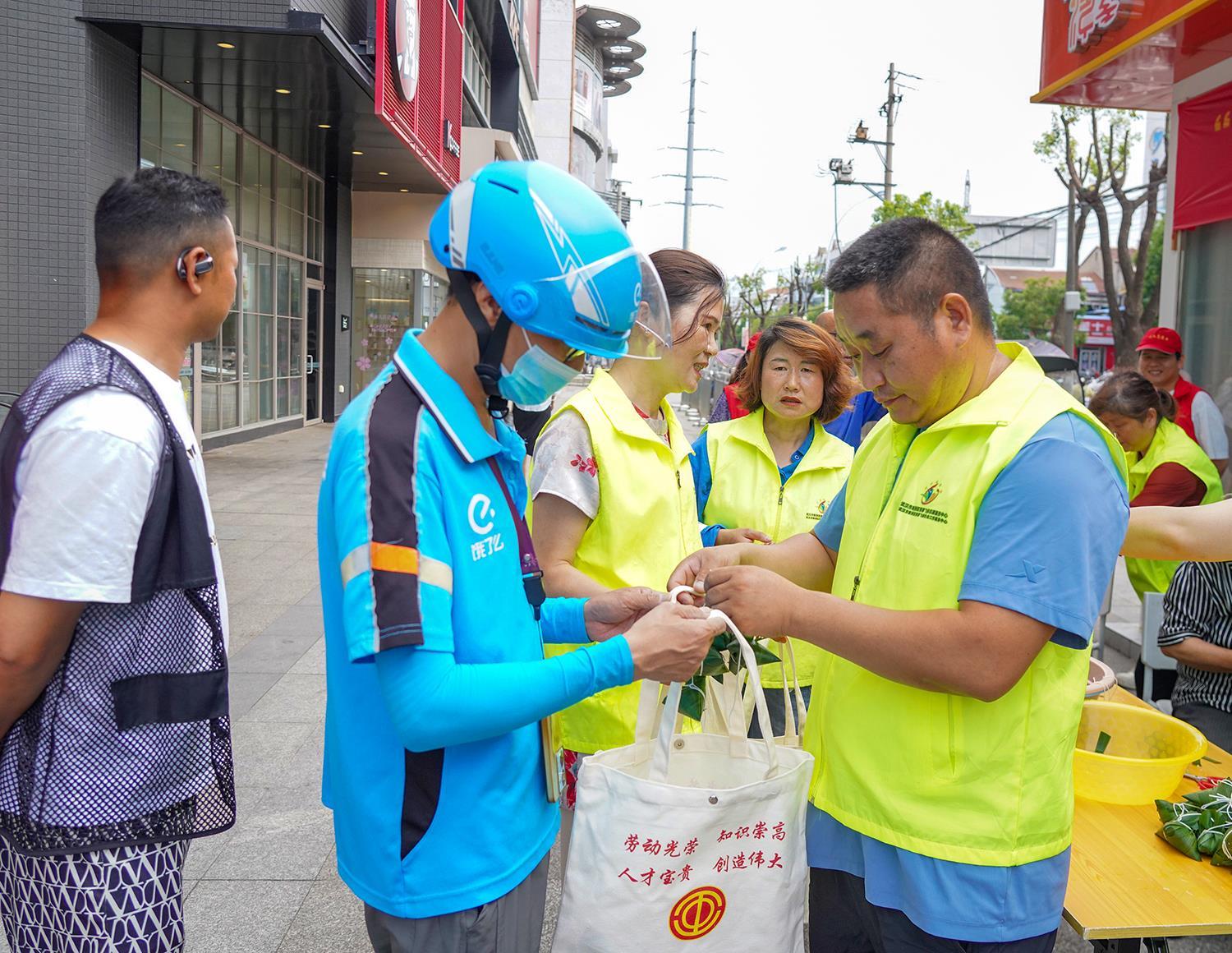 当天,新洲区总工会还联合新洲区青春飞扬社会服务中心工会、邾城街黄茂社区工会开展了丰富多彩的文明实践活动。在端午佳节来临之际,志愿者们精心准备了500个爱心粽子,赠送给快递员、外卖骑手等新就业形态劳动者,传递节日的温暖与关怀。同时,免费义诊、义剪服务为户外工作者送去健康与关怀,法律咨询台则为职工群众解答《民法典》《工会法》等相关问题,全方位满足劳动者的实际需求。