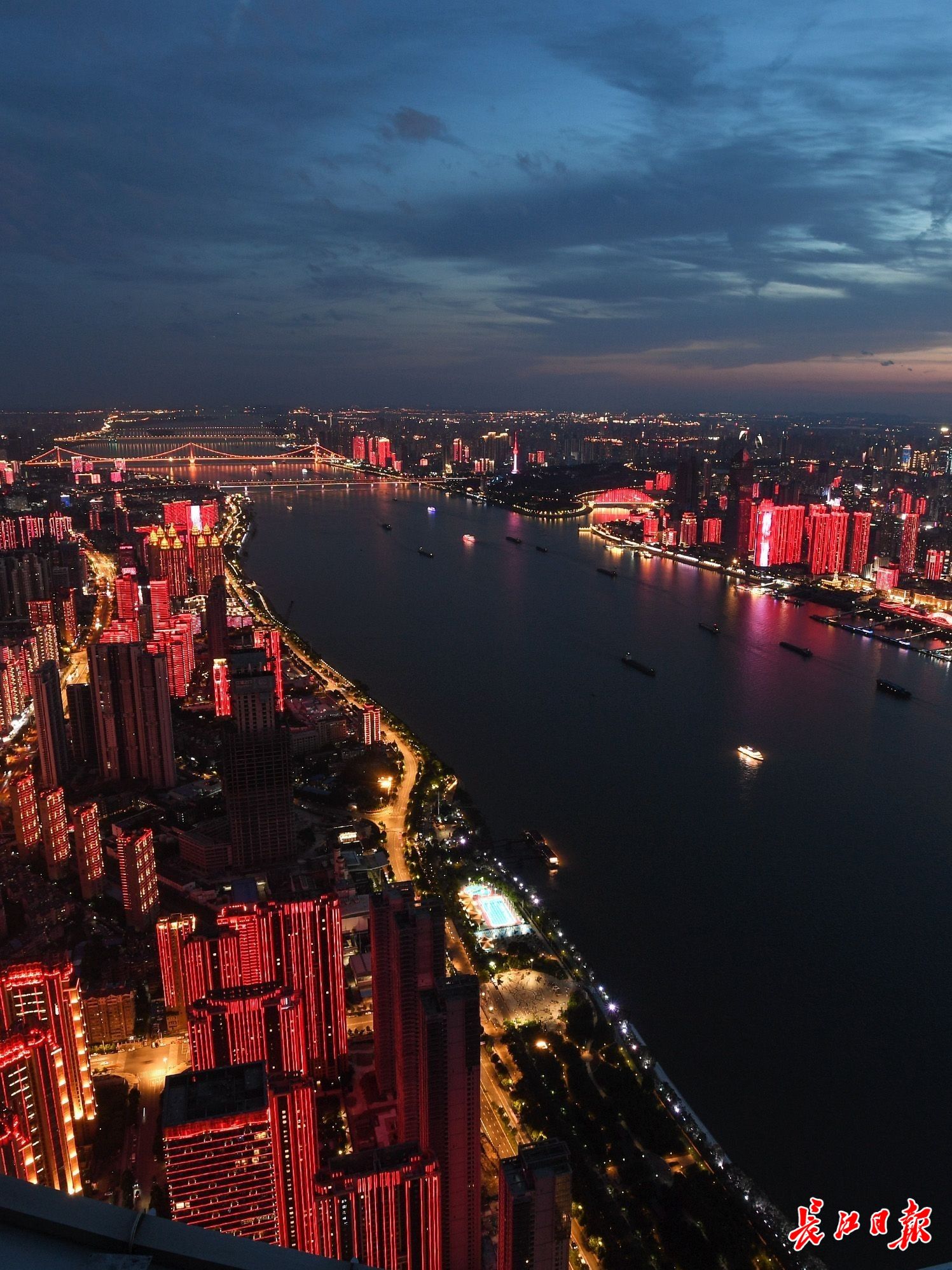两江四岸灯光秀点亮长江岸线。(长江日报资料图)