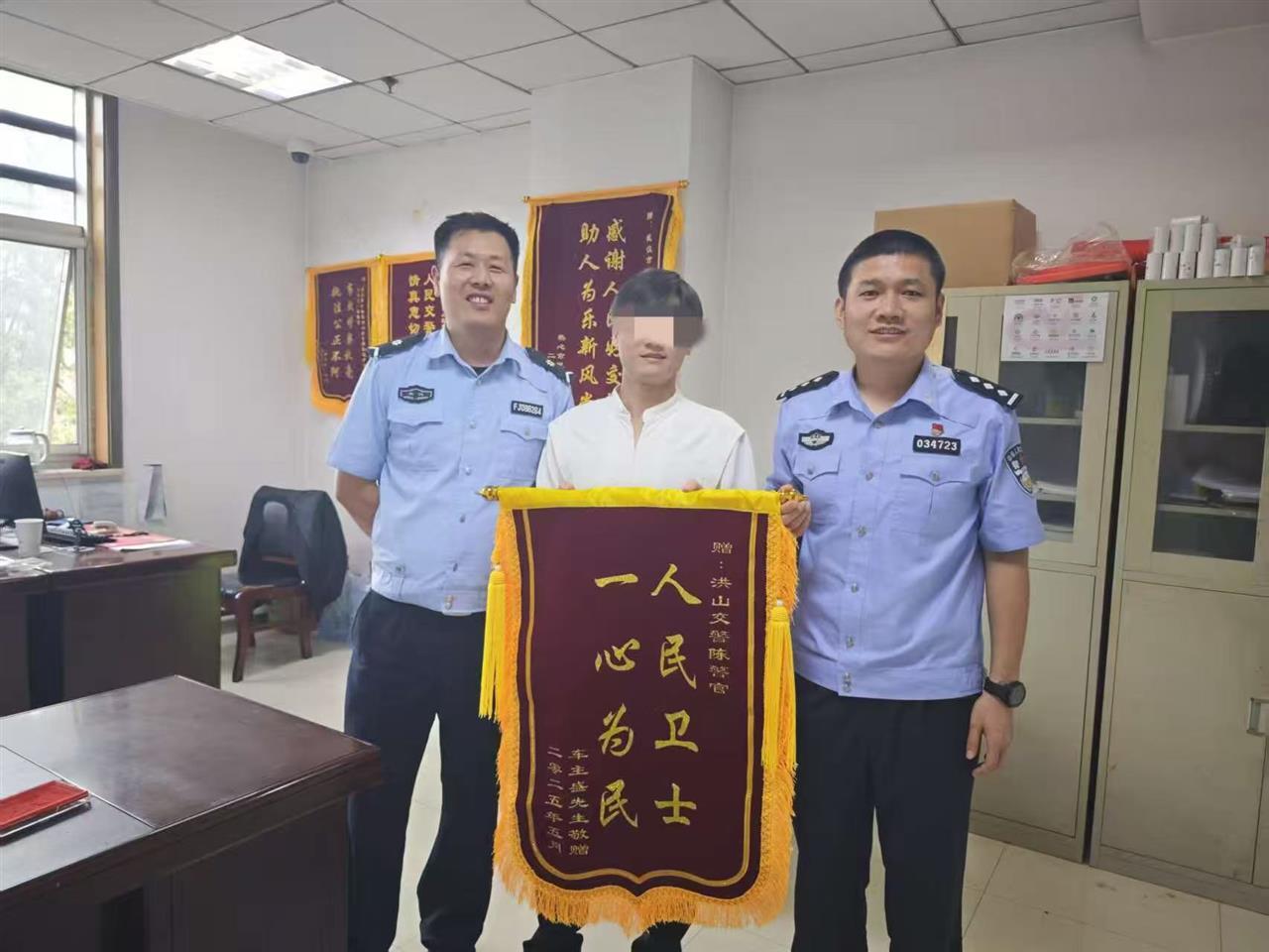 近日,市民将一面锦旗送到武汉市洪山区交管大队民警陈红磊手中,上面印着的是“人民卫士、一心为民”八个大字。