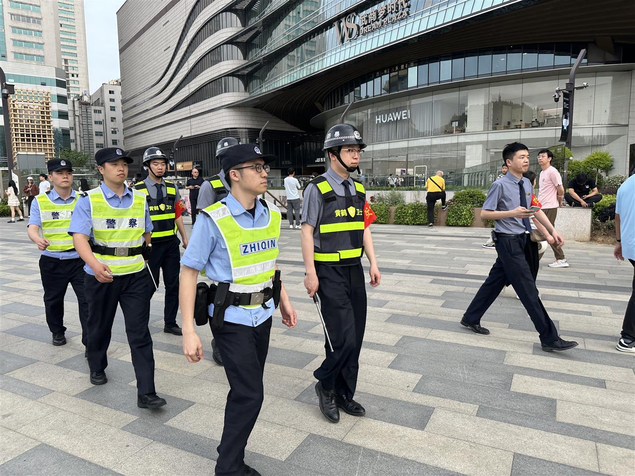 武昌区公安分局民警带领“黄鹤卫士”队员在商圈开展巡逻