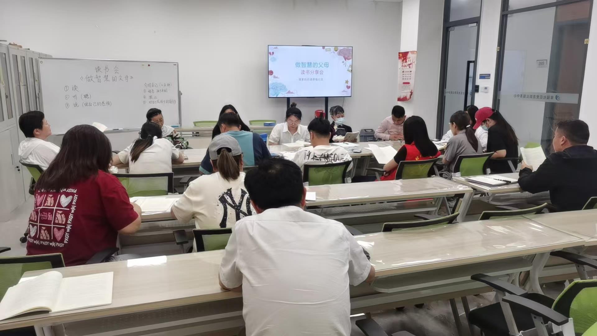 在分享环节,家长们依次发言,畅谈读书感悟与育儿困惑。家长刘先生分享道:“书中倡导的‘共情式沟通’让我深受启发,平时总觉得孩子不听话,原来是我没真正理解他的想法。” 吴女士则反思道:“我可能就是干扰型父母,总在孩子写作业时频繁催促,现在才明白这反而增加了他的内耗。” 一句句真诚的分享,一次次思维的碰撞,让现场充满了热烈而温暖的学习氛围。