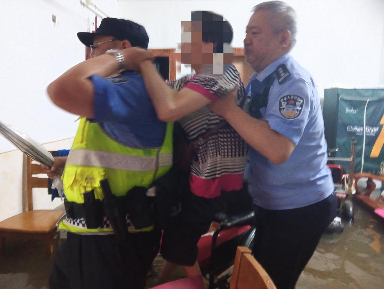 17时许,武昌区洪山坊的周女士报警称,家中一楼积水严重,中风的母亲被困在屋内。武昌区公安分局中南路派出所民警李振钊迅速赶到,与消防人员配合,用担架将老人抬出,转移到安全区域。