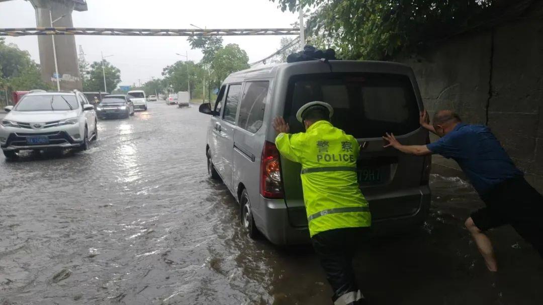 15时48分,江夏区交通大队二中队辅警王洪在柏木岭涵洞巡逻时,发现一辆因不熟悉路况贸然驶入积水区域而抛锚的面包车。他与车上一名男子合力将车推出积水,转移至安全地带,并贴心叮嘱车主:“遇到积水路段一定要先观察水深,不确定就不要冒险通行。”确认车辆安全后,王洪又继续投入巡逻工作。